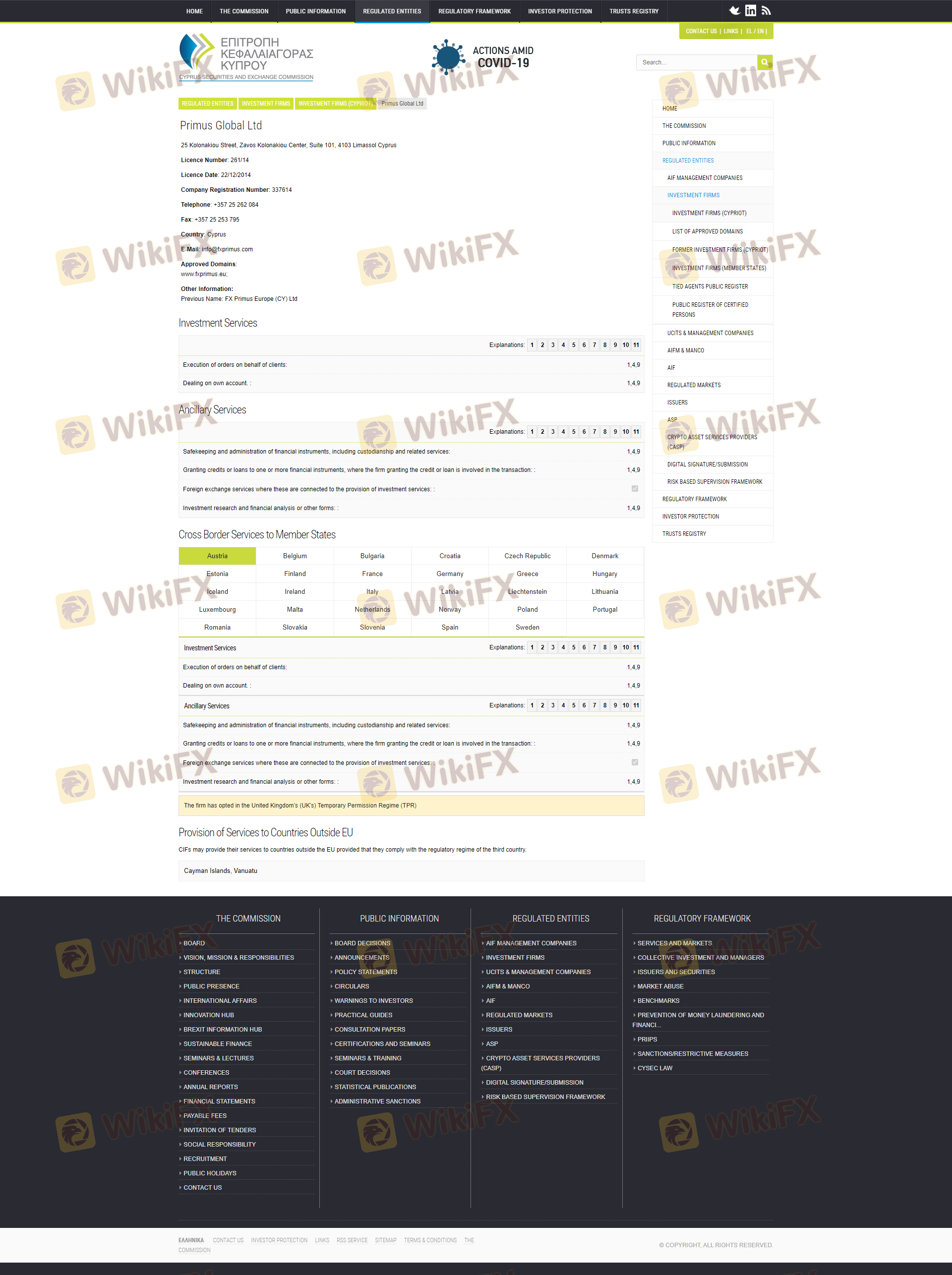 Heres a summary of the regulatory details for Fxprimus: