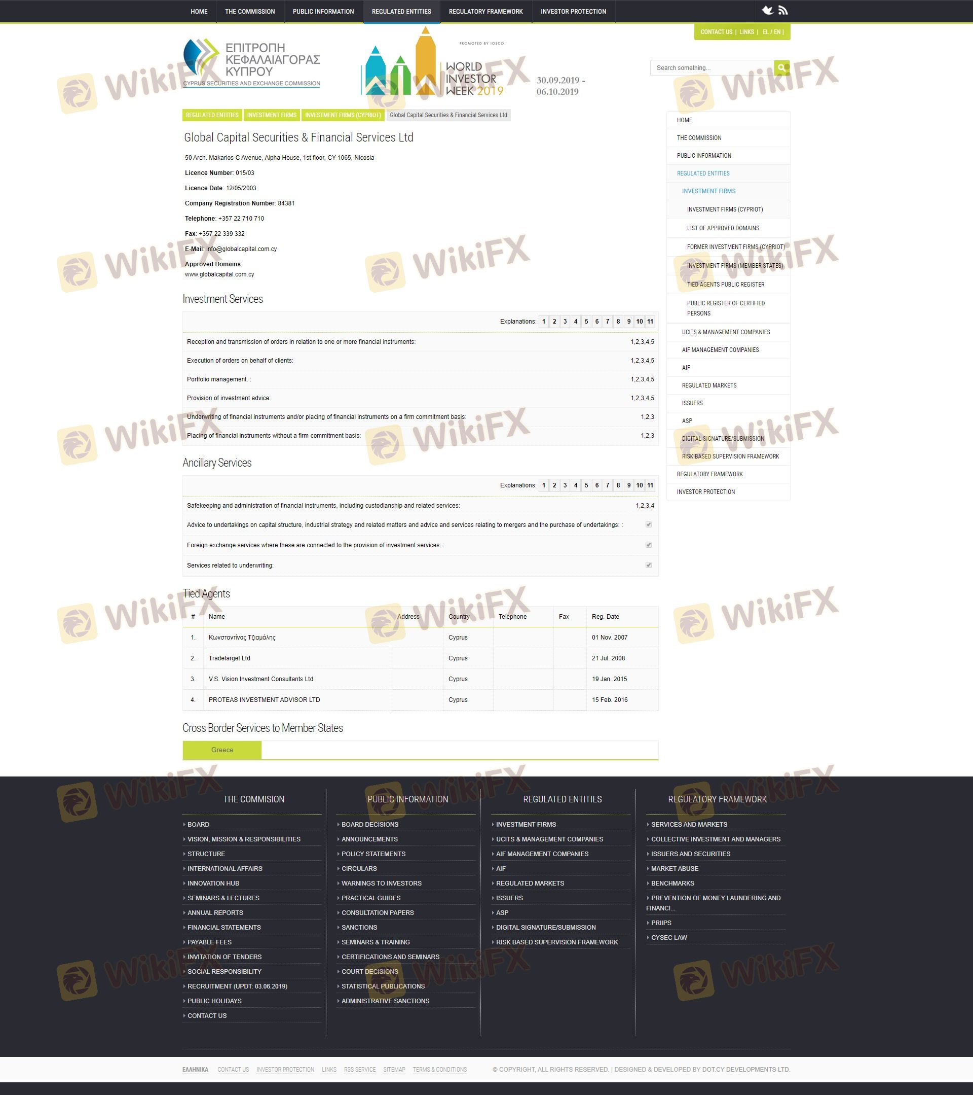 Regarding the legitimacy of Global Capital forex brokers, it provides CYSEC and WikiBit, (also has a graphic survey regarding security).