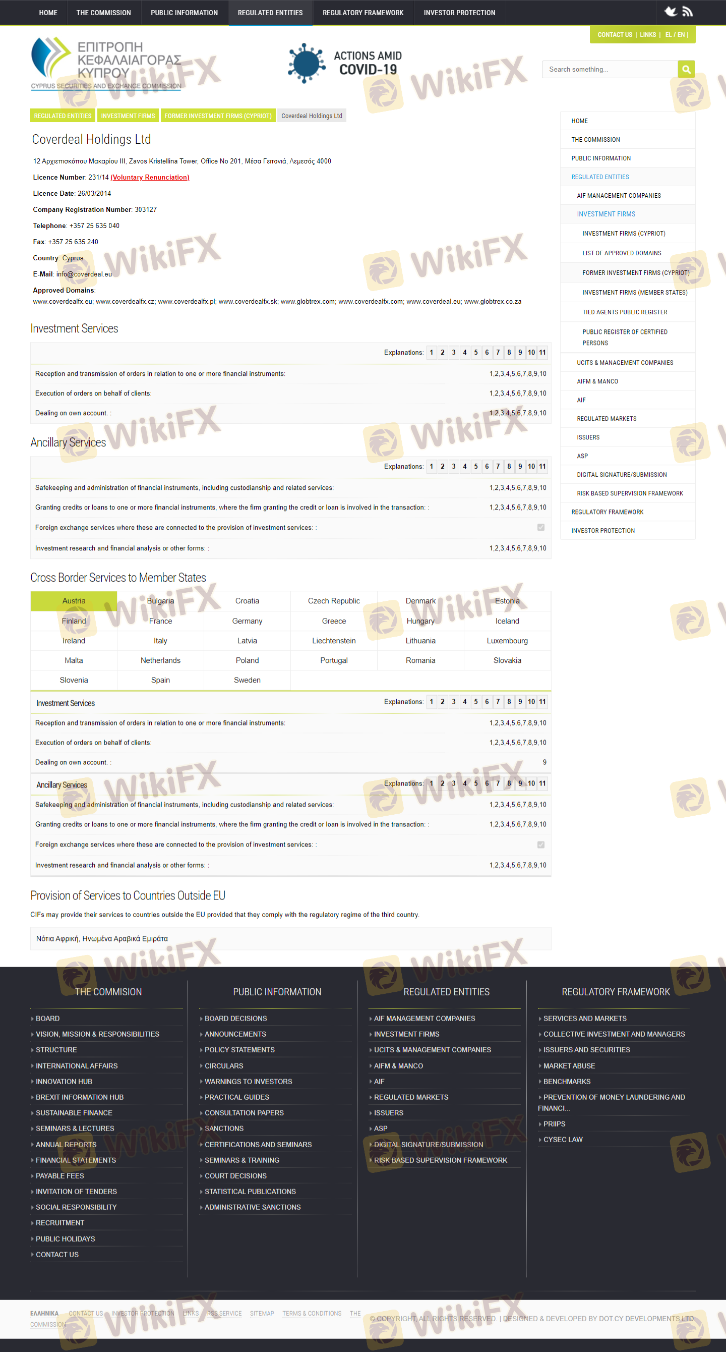| Cyprus Securities and Exchange Commission (CySEC) | 231/14 | Cyprus | License withdrawn |