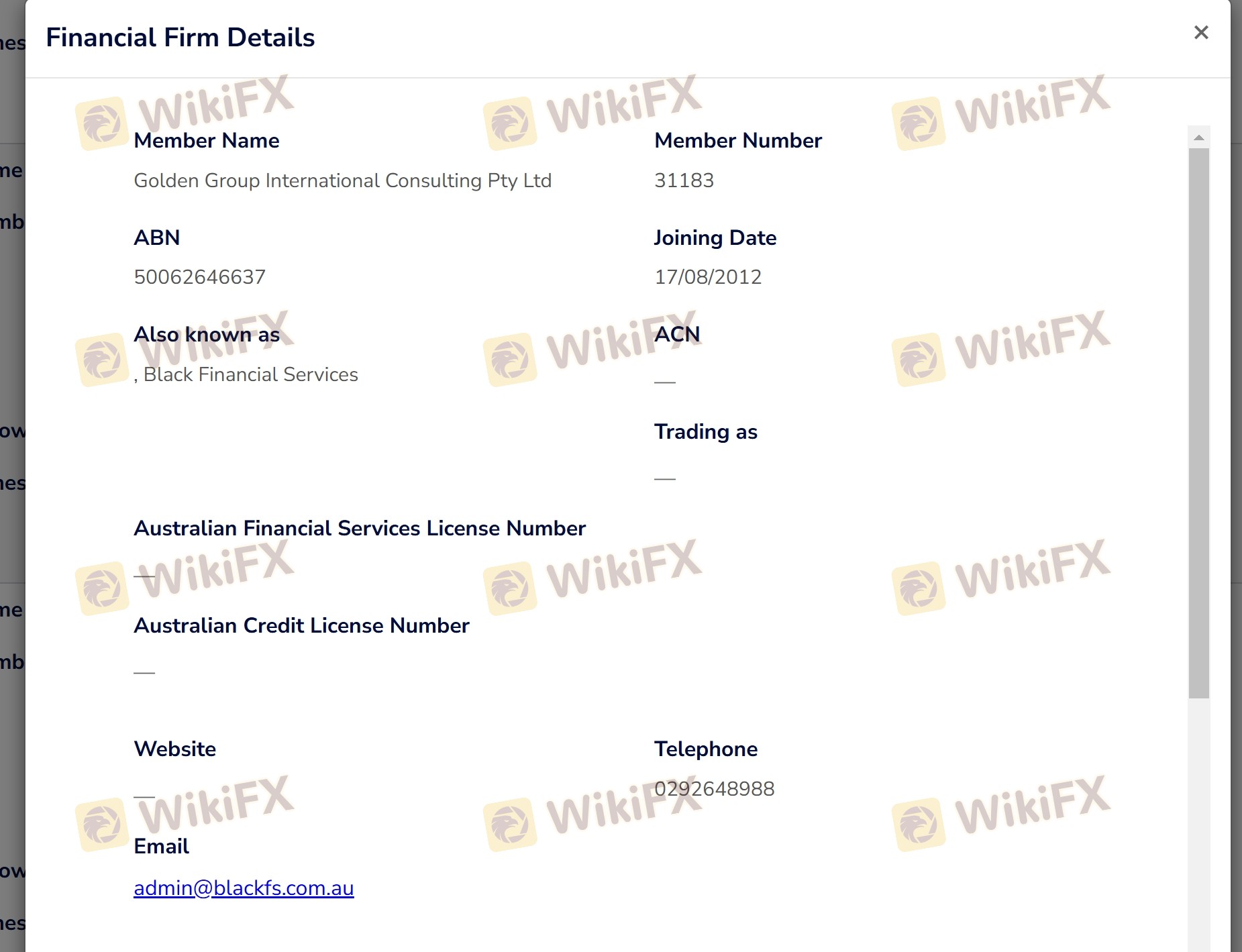 The table above outlines the key regulatory information for Golden Group. While the broker is regulated by the Australian Securities and Investments Commission (ASIC) and the Chinese Gold & Silver Exchange Society (CGSE), it also faces scrutiny from the National Futures Association (NFA) in the USA, where it has been flagged as suspicious. This raises concerns about its operational legitimacy, particularly because the NFA is a well-respected authority in the financial services sector.