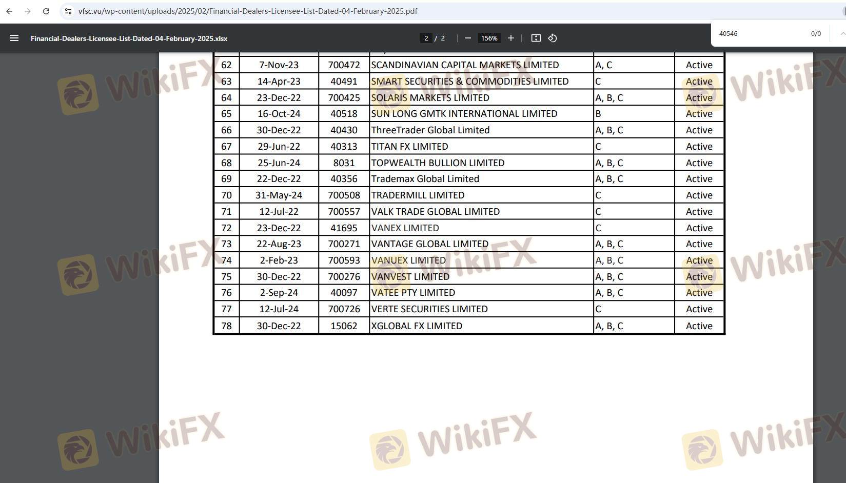 VFSC Forex Trading License (EP)