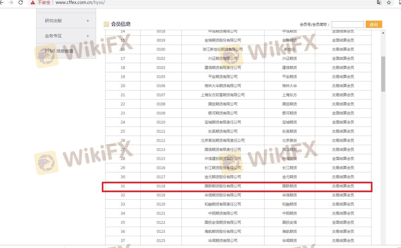 The regulatory status of a broker is crucial in determining its safety and reliability. Guolian Futures is regulated by the China Financial Futures Exchange (CFFEX), which oversees its operations and ensures compliance with relevant financial regulations. Below is a summary of the core regulatory information for Guolian Futures: