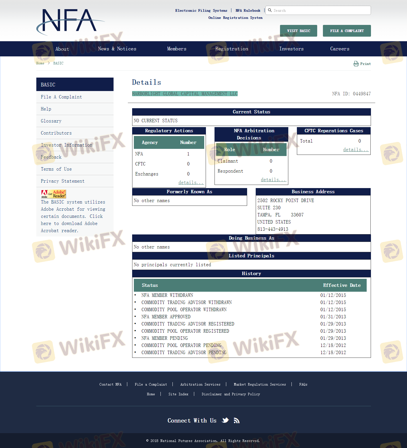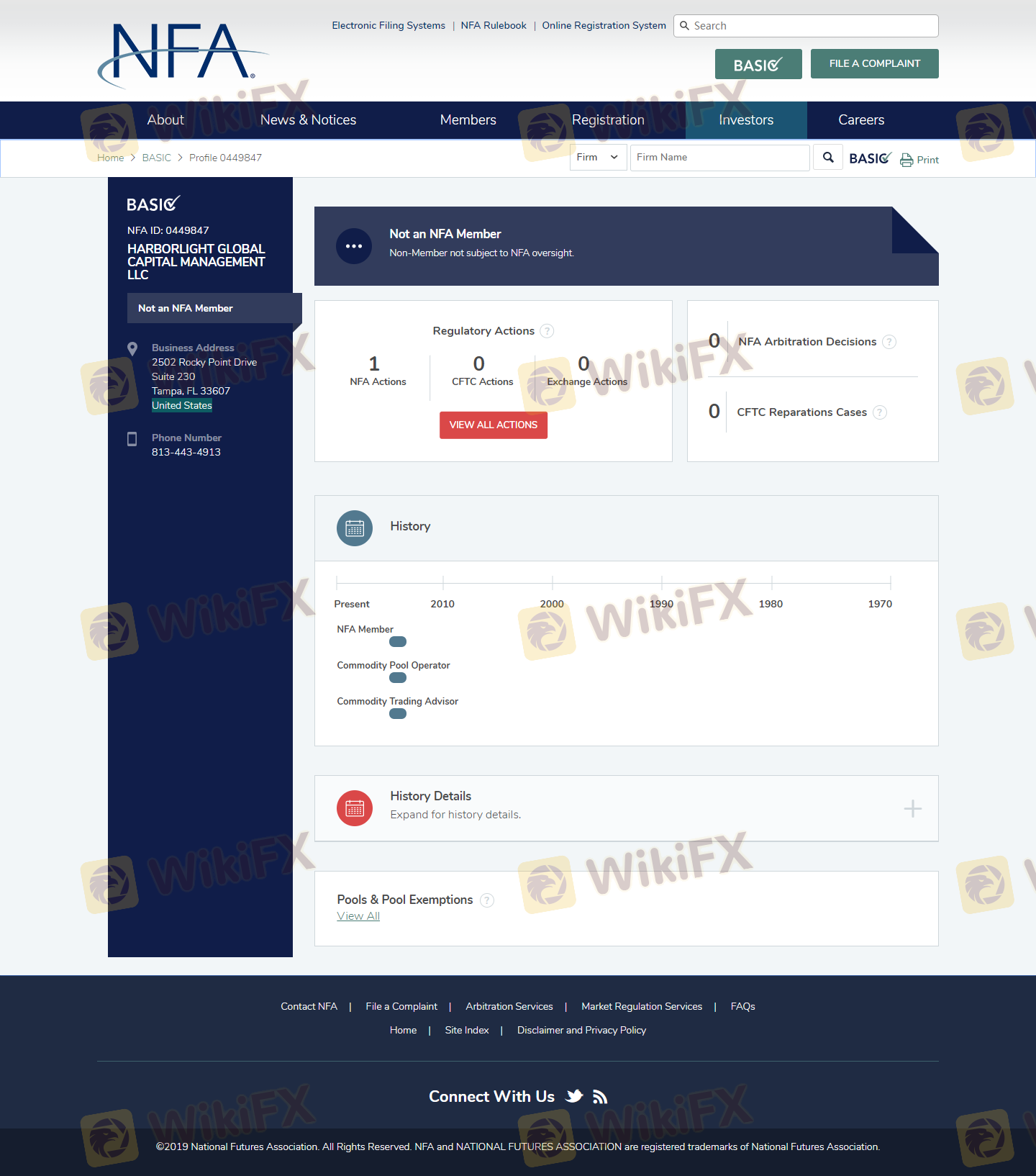 Regarding the legitimacy of HFH forex brokers, it provides NFA and WikiBit, .