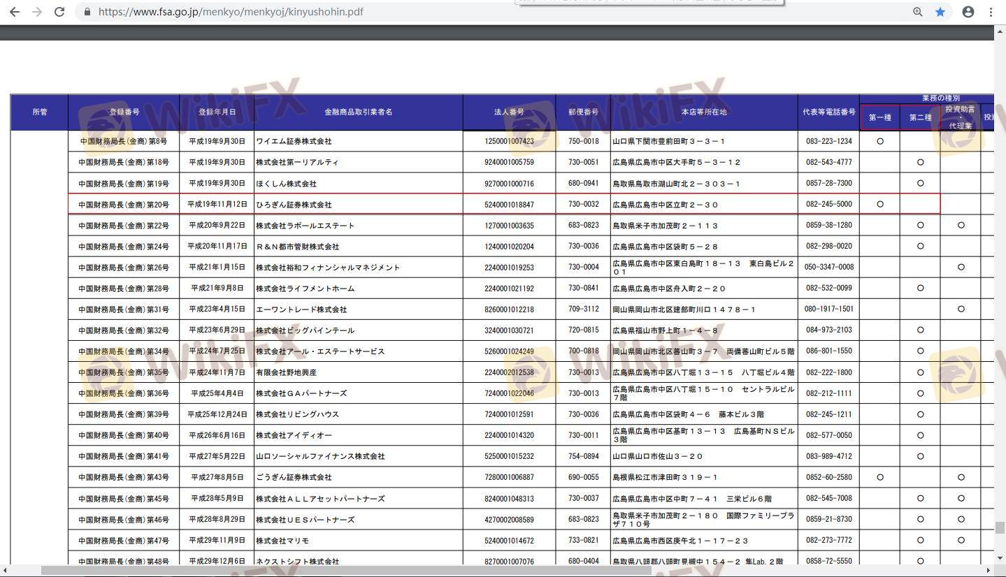 Hirogin Securities, established in 2008, is a Japanese brokerage firm based in Hiroshima, primarily known for its services in the foreign exchange (Forex) market. As a subsidiary of Hirogin Holdings, it offers a range of financial products, including stocks, ETFs, and options trading. However, the growing number of Forex brokers has made it essential for traders to carefully evaluate which platforms to trust with their investments. With the potential for fraud and mismanagement in the industry, assessing the legitimacy and safety of brokers like Hirogin Securities is crucial. This article aims to provide an objective analysis of Hirogin Securities by examining its regulatory status, company background, trading conditions, customer fund safety, user experiences, platform performance, and associated risks.