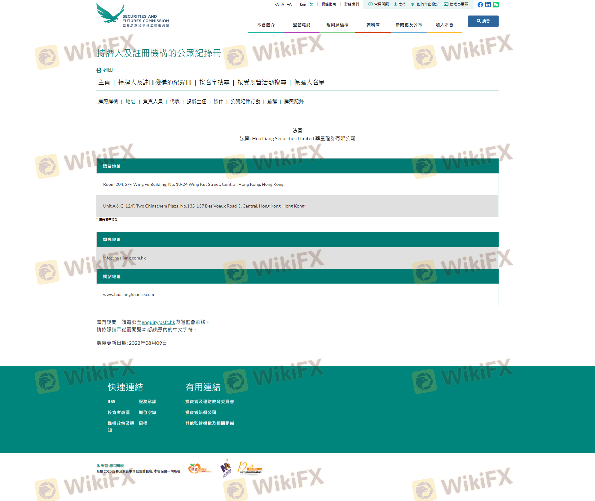 Regarding the legitimacy of HUA LIANG forex brokers, it provides SFC and WikiBit, (also has a graphic survey regarding security).