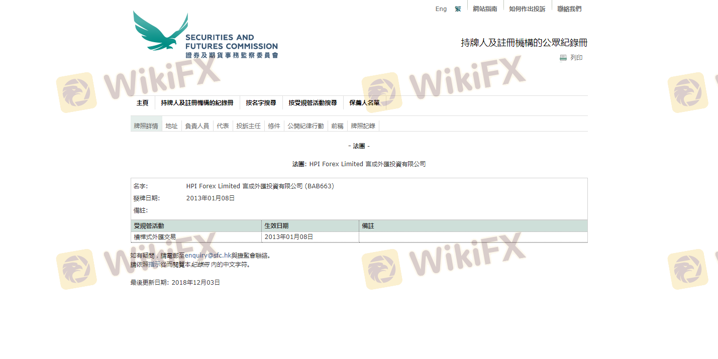 Regarding the legitimacy of HPI forex brokers, it provides SFC and WikiBit, .