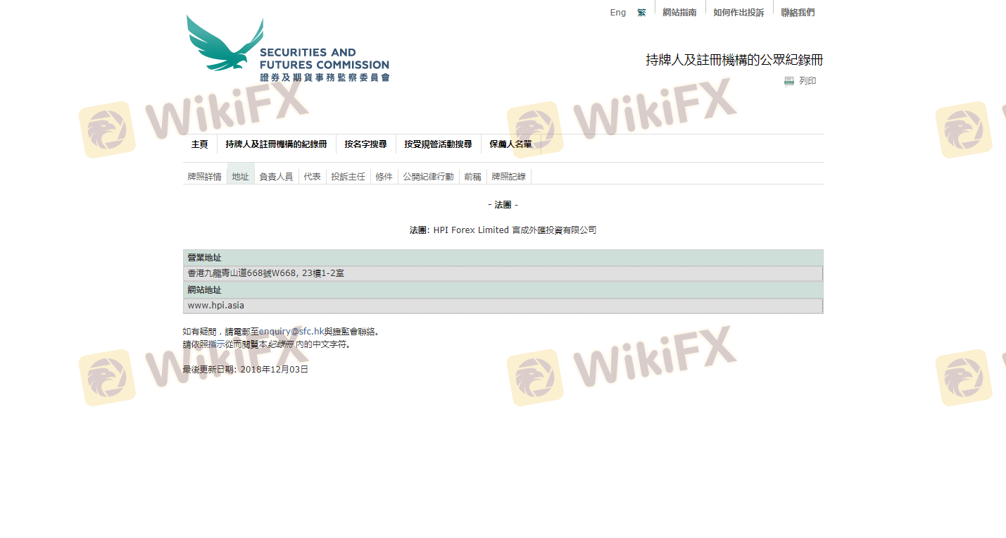 The regulatory environment surrounding a forex broker is a key indicator of its legitimacy. HPI operates under the oversight of the Securities and Futures Commission (SFC) of Hong Kong. However, it has been flagged as a "suspicious clone," indicating that there may be concerns regarding its compliance and operational practices.