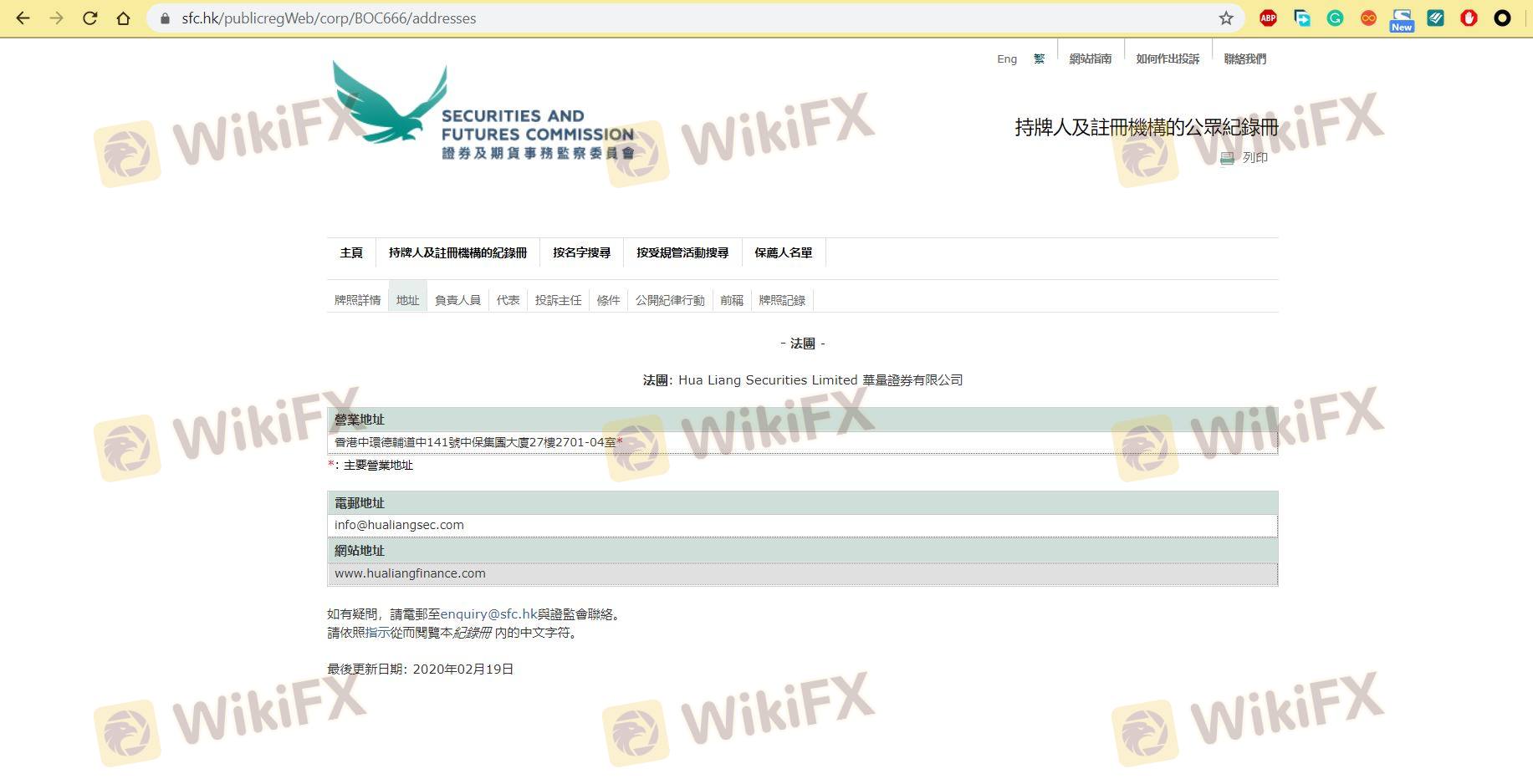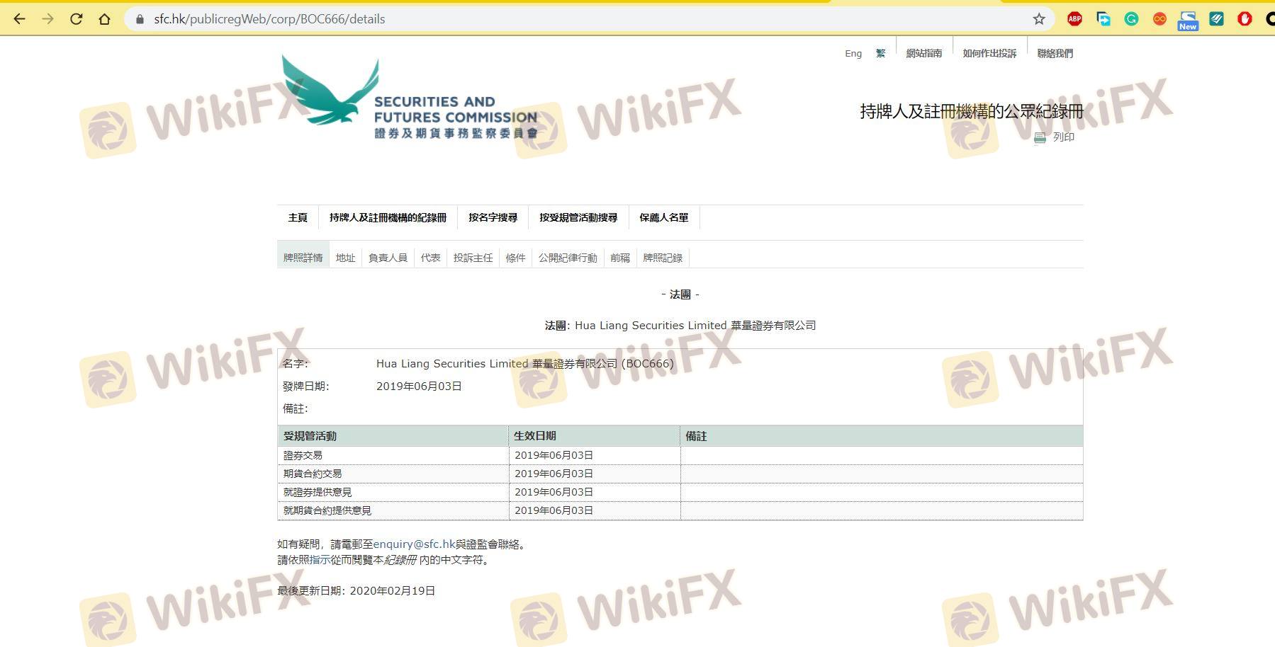 Regarding the legitimacy of HUA LIANG forex brokers, it provides SFC and WikiBit, (also has a graphic survey regarding security).