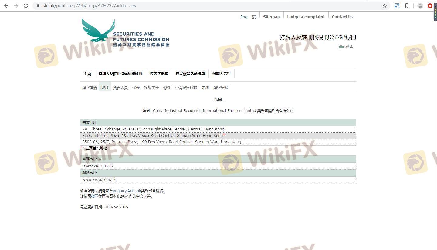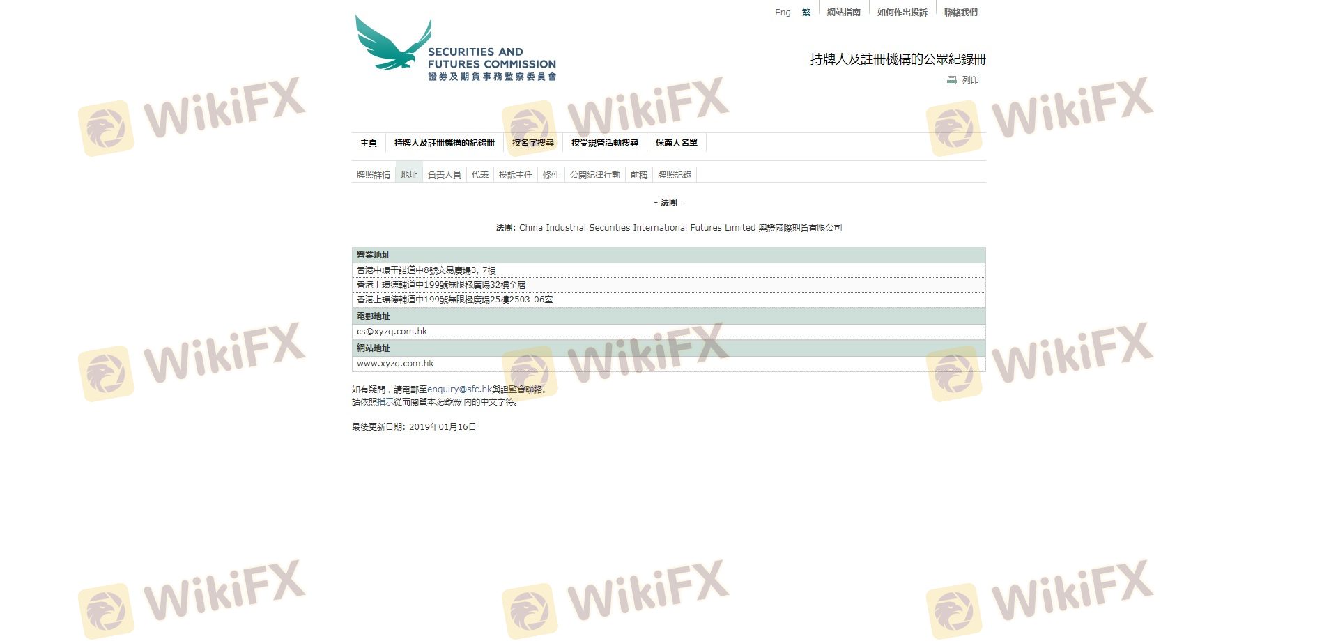 The regulatory framework surrounding a broker is a key indicator of its legitimacy and reliability. Industrial Securities is regulated by both the Chinese Securities Regulatory Commission (CSRC) and the Hong Kong Securities and Futures Commission (SFC). These regulatory bodies impose stringent requirements on brokers to ensure fair trading practices and the protection of clients' funds. Below is a summary of the core regulatory information for Industrial Securities: