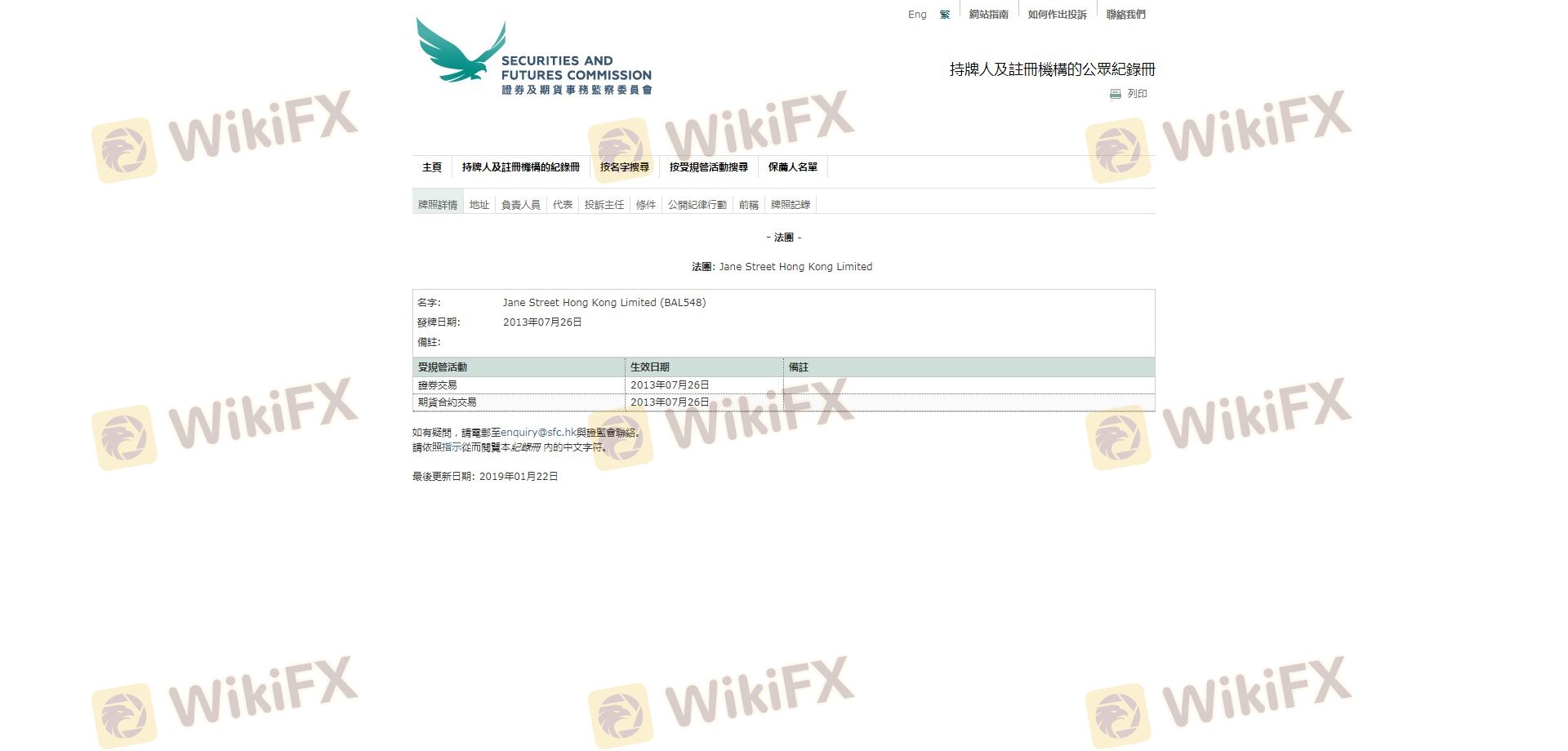 The SFC is known for its rigorous regulatory framework, providing a level of confidence for traders. However, it is worth noting that Jane Street's operations exceed the business scope regulated by the Financial Conduct Authority (FCA) in the UK, which raises some concerns for investors who prefer brokers operating strictly within the FCA's jurisdiction. Despite this, Jane Street has maintained a strong compliance record with the SFC, which is essential for assessing its legitimacy.
