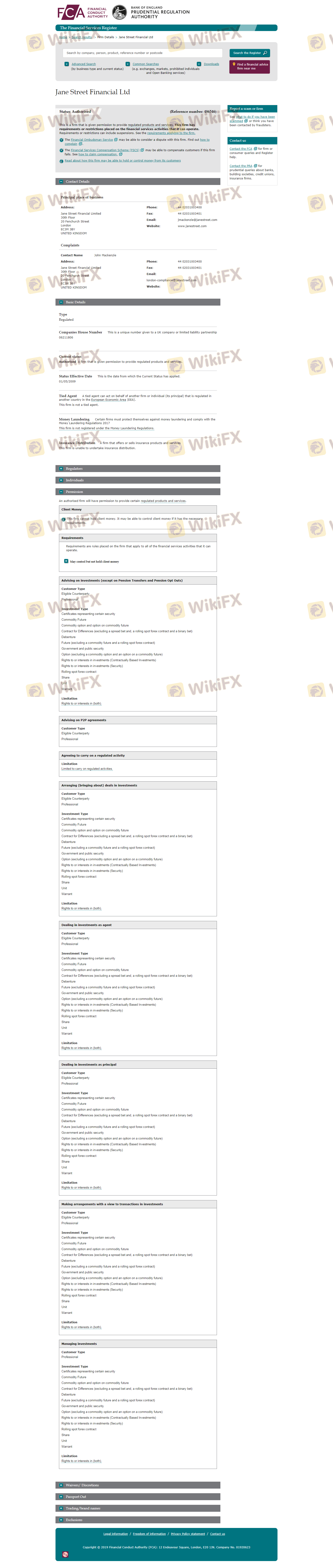 Regarding the legitimacy of Jane Street forex brokers, it provides SFC, FCA and WikiBit, (also has a graphic survey regarding security).