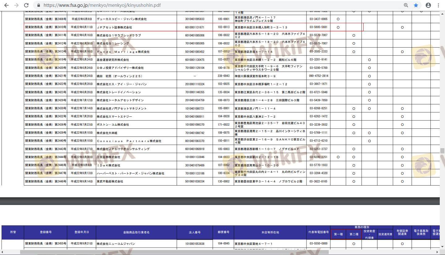 Regulation plays a pivotal role in determining the safety and legitimacy of a forex broker. A well-regulated broker provides a level of assurance to traders, ensuring adherence to industry standards and protecting clients' funds. Japan Private Asset is regulated by the Financial Services Agency (FSA) of Japan. Below is a summary of its regulatory information: