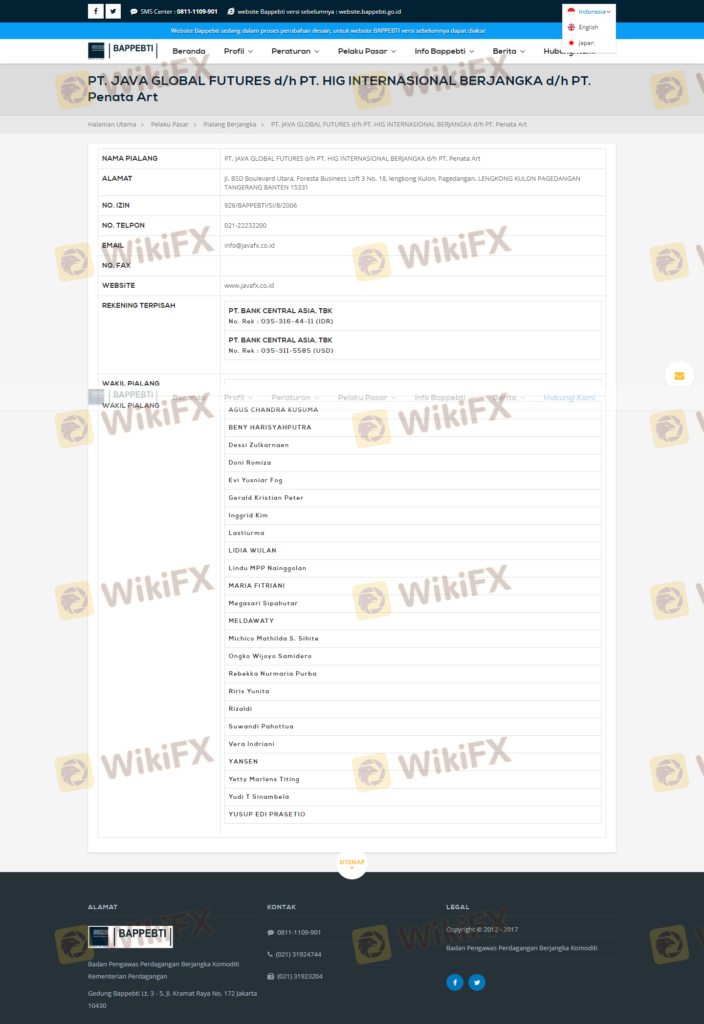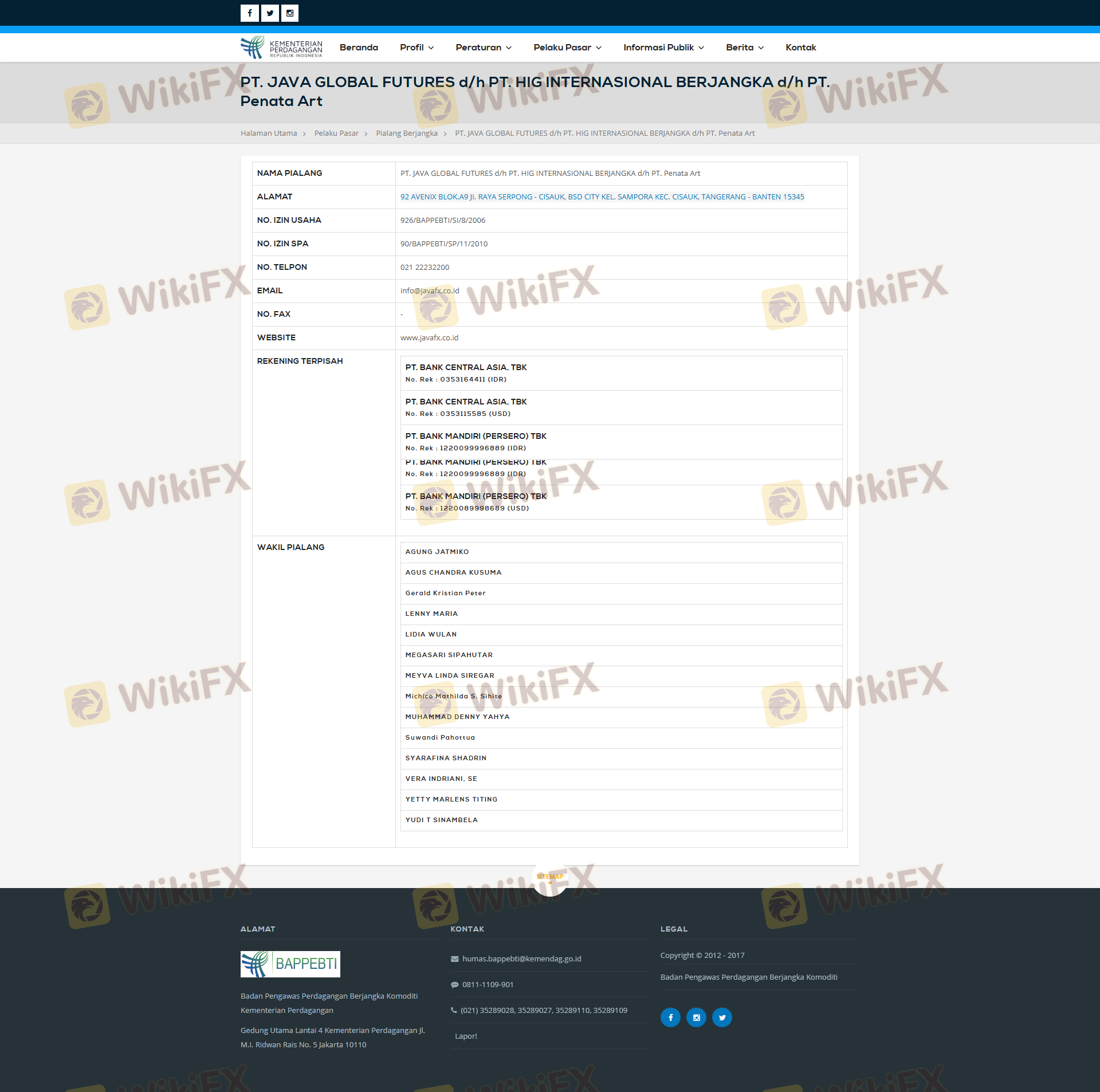 Regarding the legitimacy of JAVA forex brokers, it provides BAPPEBTI, JFX, ICDX and WikiBit, (also has a graphic survey regarding security).
