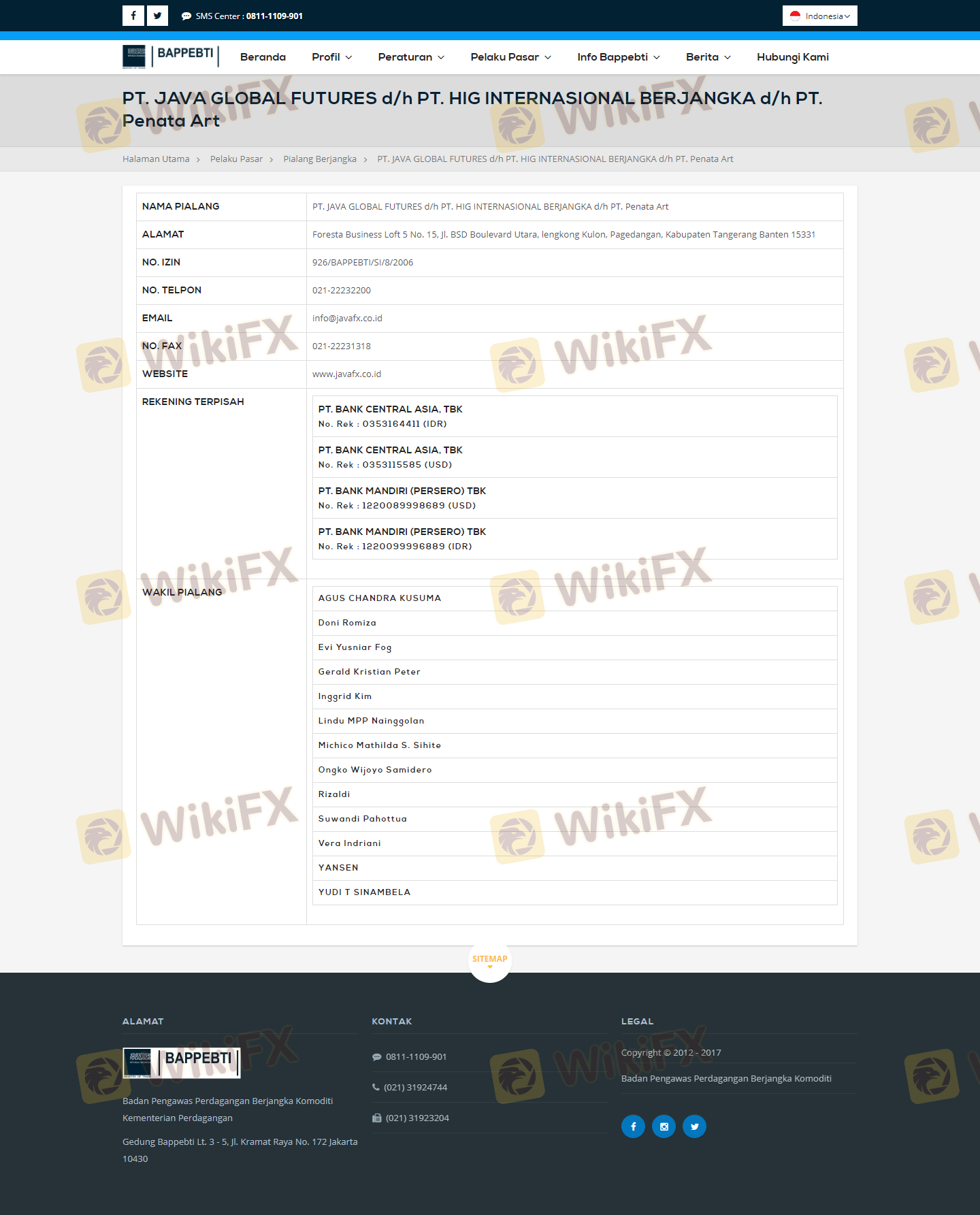 | BAPPEBTI | 926/BAPPEBTI/SI/8/2006 | Indonesia | Verified |