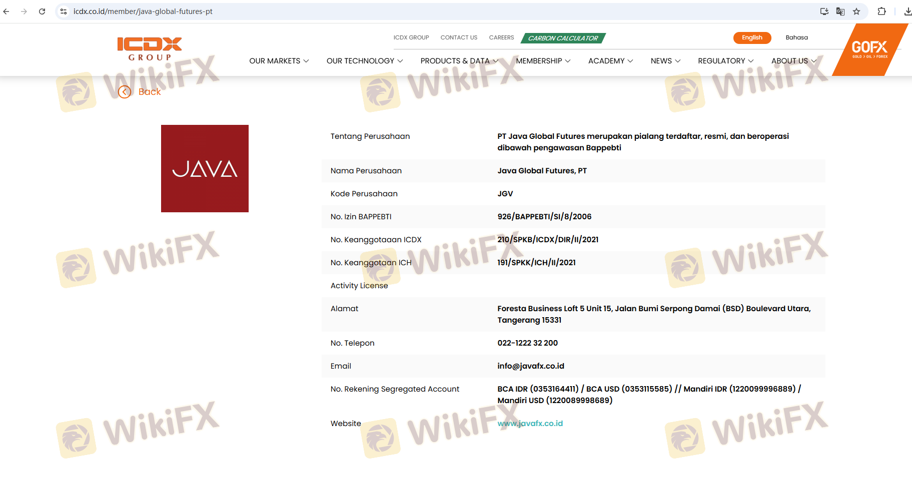 Regulation is a key factor in determining the safety of a forex broker. Java is regulated by the Indonesian Commodity Futures Trading Regulatory Agency (BAPPEBTI) and is a member of the Jakarta Futures Exchange (JFX). Such regulation generally indicates that the broker must adhere to specific operational guidelines, which can enhance the security of client funds. However, the quality of regulation varies significantly across jurisdictions, and not all regulators enforce strict compliance.