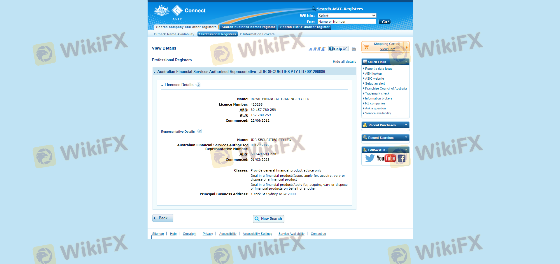 JDR Securities is structured as a subsidiary of Royal Financial Trading Pty Ltd, which is regulated by ASIC. The company was founded with the intention of providing a reliable trading environment for both novice and experienced traders. However, being a relatively new entrant, it lacks a long history of performance and reputation in the market.