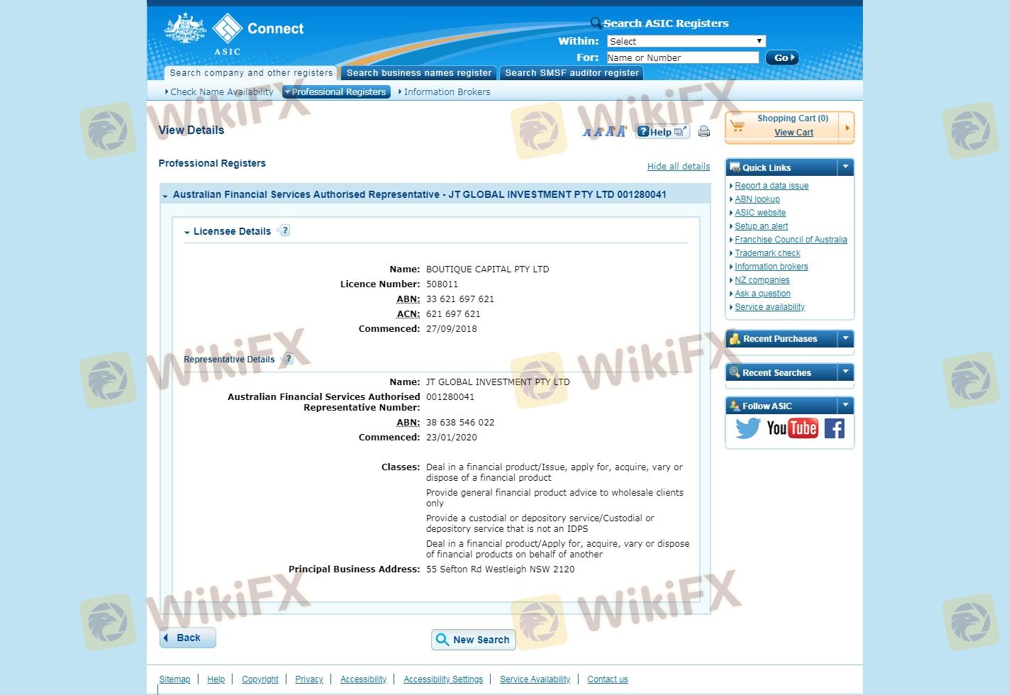 Regarding the legitimacy of JT forex brokers, it provides ASIC and WikiBit, .