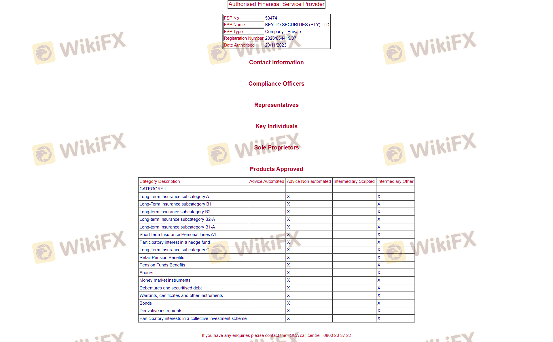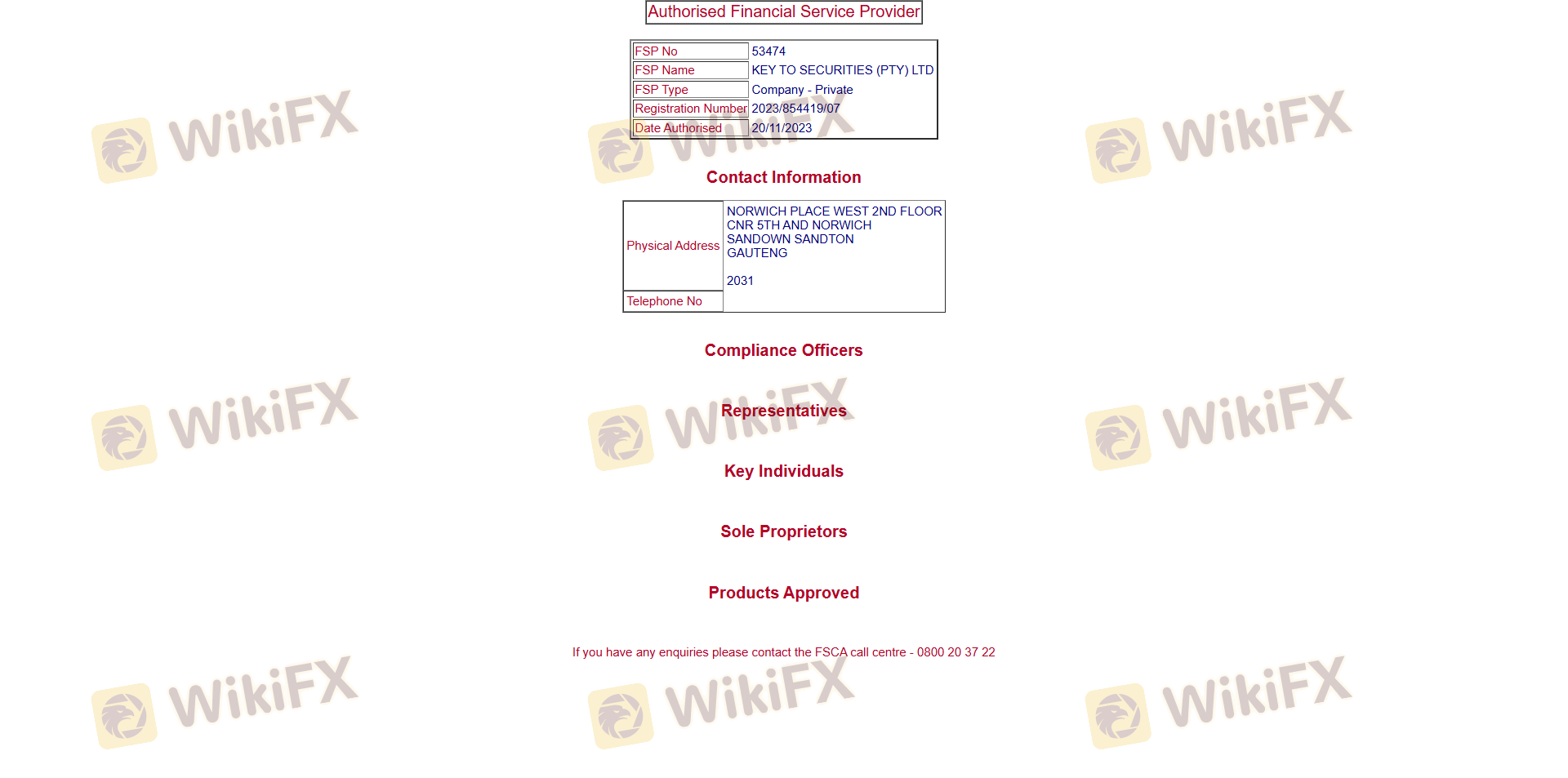 Regarding the legitimacy of KEY TO SECURITIES forex brokers, it provides FSCA and WikiBit, .