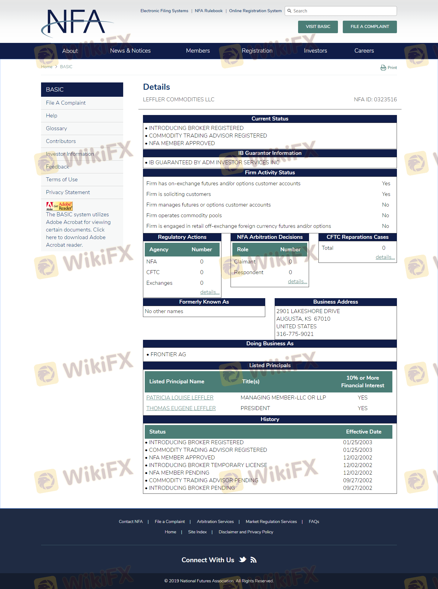 Leffler Commodities, LLC, commonly known as Leffler, positions itself as a full-service brokerage firm specializing in agricultural futures and options trading. With a history dating back to 2001, the company has carved a niche in the commodity trading sector, primarily serving clients within the agricultural industry. However, as the forex market continues to attract a diverse range of traders, it is crucial for individuals to carefully evaluate the credibility of brokers like Leffler. Given the prevalence of scams and fraudulent practices in the trading world, traders must be vigilant in their assessments to safeguard their investments. This article employs a comprehensive investigative approach, analyzing regulatory compliance, company background, trading conditions, customer experiences, and potential risks associated with Leffler, ultimately answering the question: Is Leffler safe?