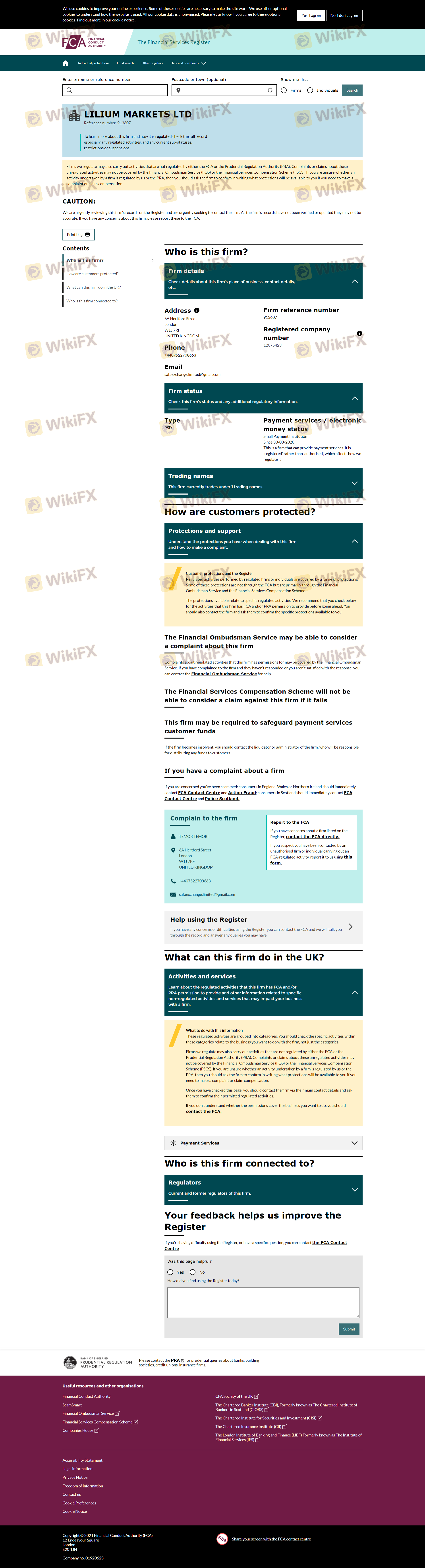 Regarding the legitimacy of Lilium forex brokers, it provides FCA and WikiBit, (also has a graphic survey regarding security).