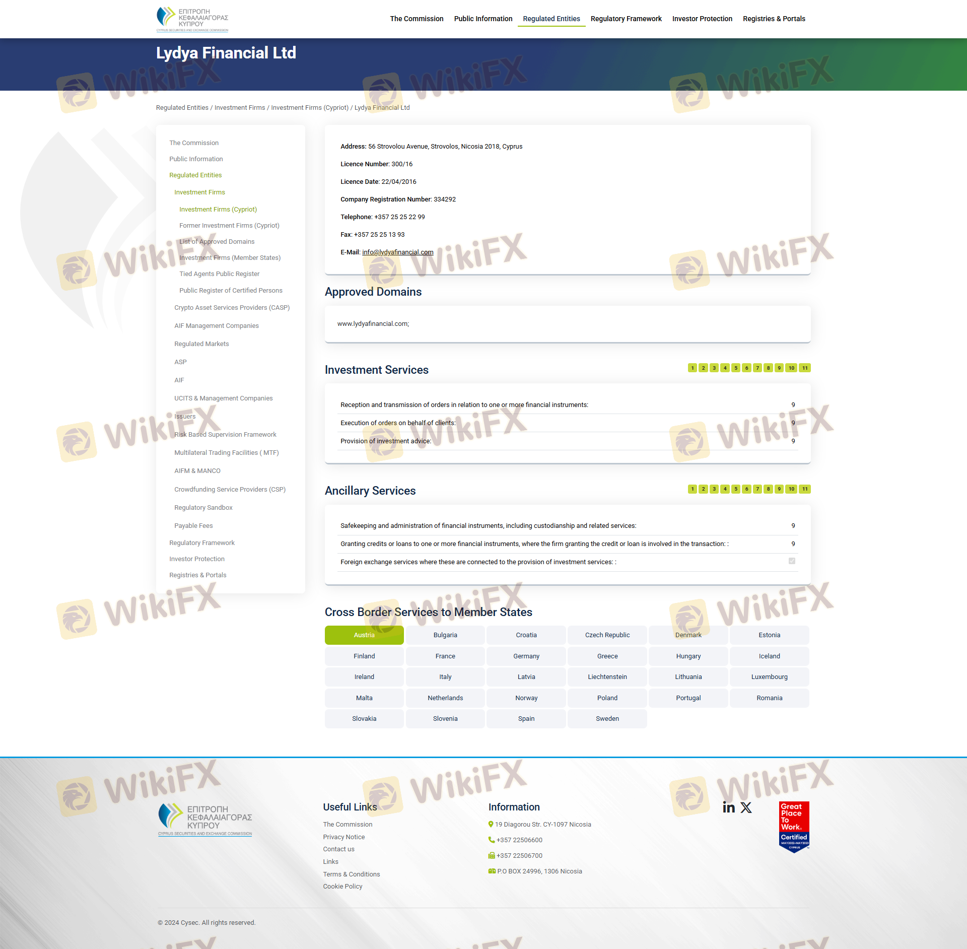 Regarding the legitimacy of Lydya Financial forex brokers, it provides CYSEC and WikiBit, .