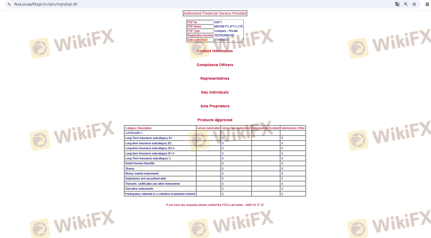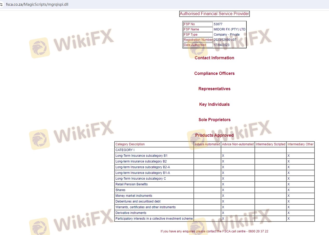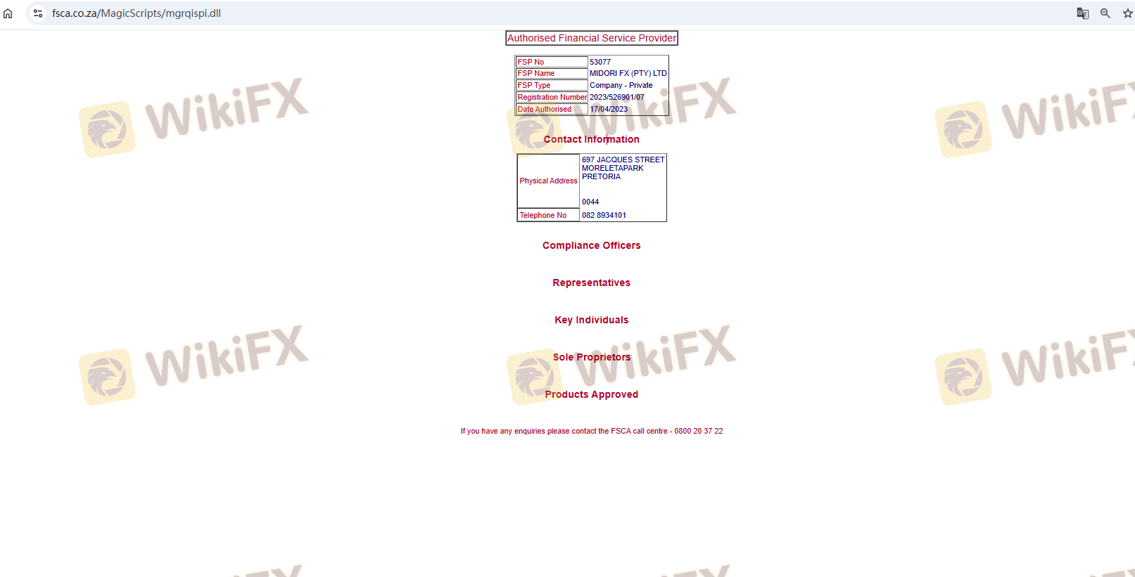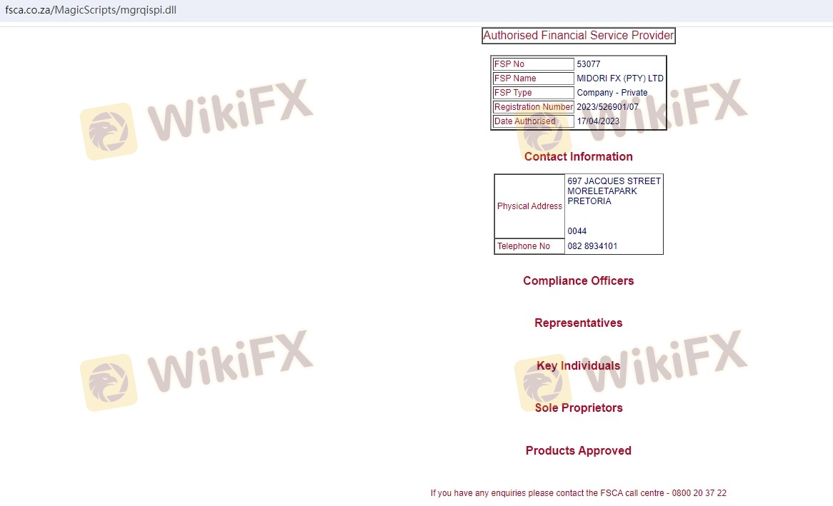 One of the most critical aspects of determining whether Midori FX is safe or a scam is its regulatory status. Regulation serves as a safeguard for traders, ensuring that brokers adhere to specific standards and practices designed to protect investors. Midori FX is regulated by the Financial Sector Conduct Authority (FSCA) in South Africa, which is a recognized regulatory body. Below is a summary of the regulatory information: