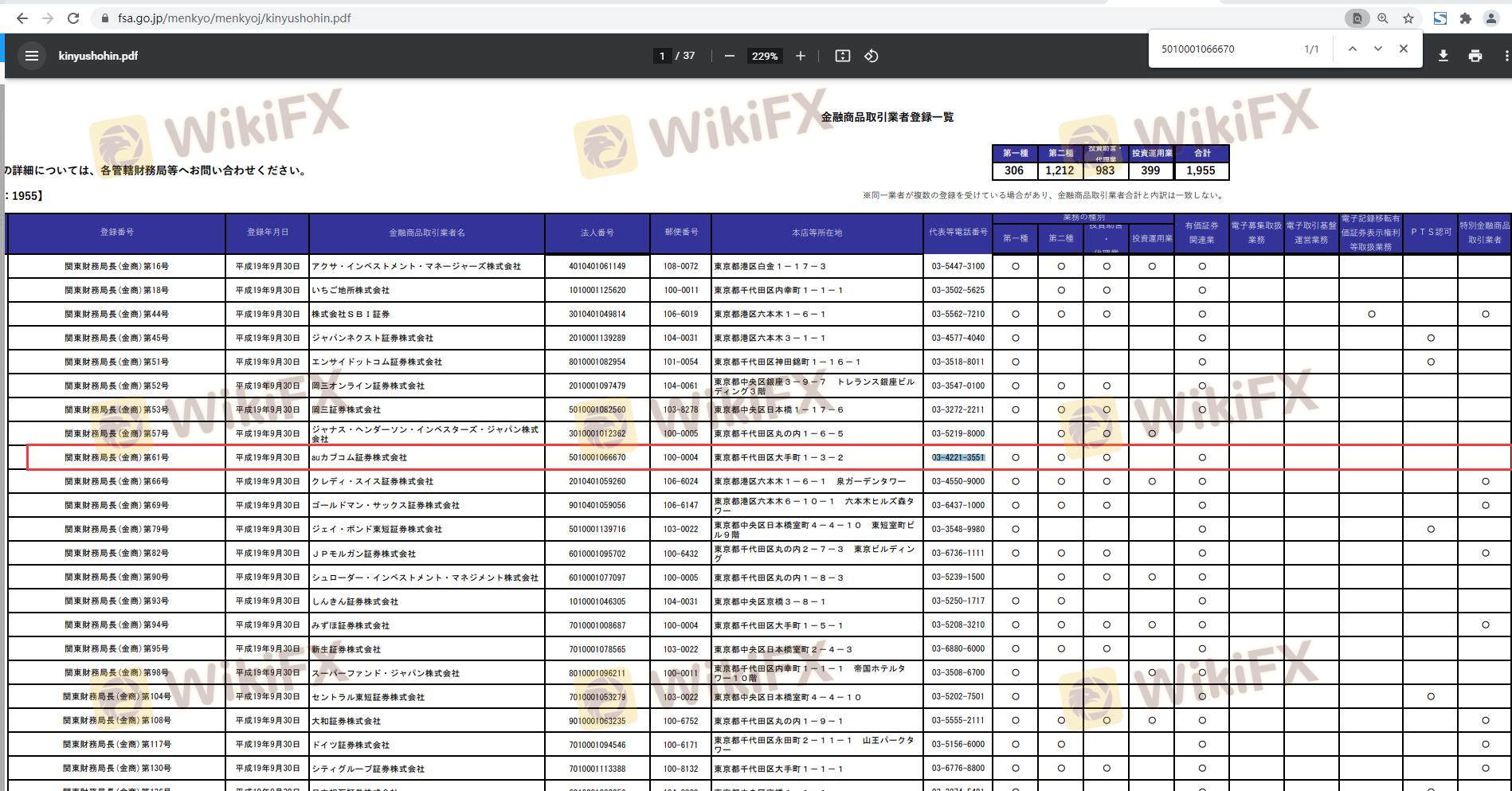 The regulatory status of a broker is a key indicator of its legitimacy and safety. au Kabucom Securities operates under the oversight of the FSA, which is known for its stringent regulatory framework. Below is a summary of the core regulatory information: