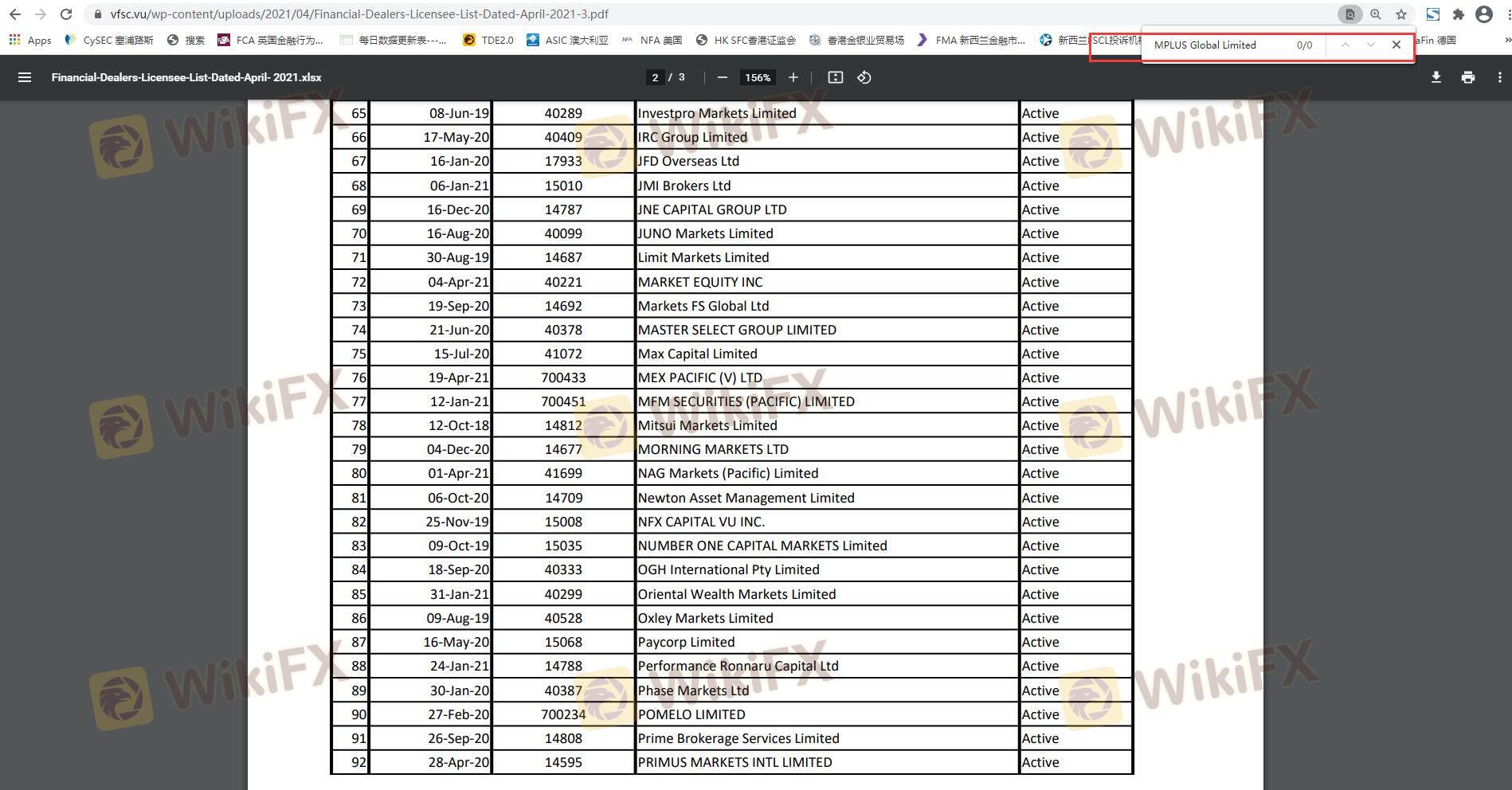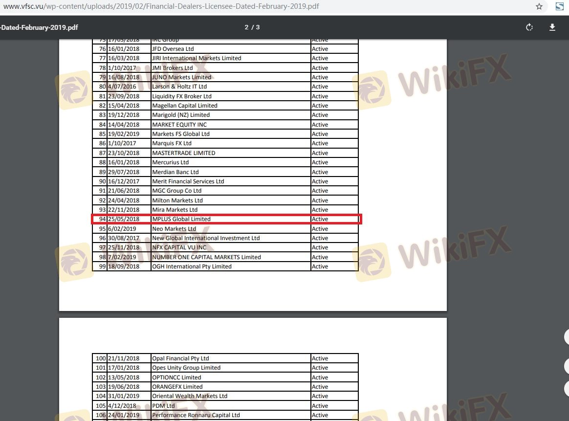 Regarding the legitimacy of MPLUSFX forex brokers, it provides VFSC and WikiBit, .