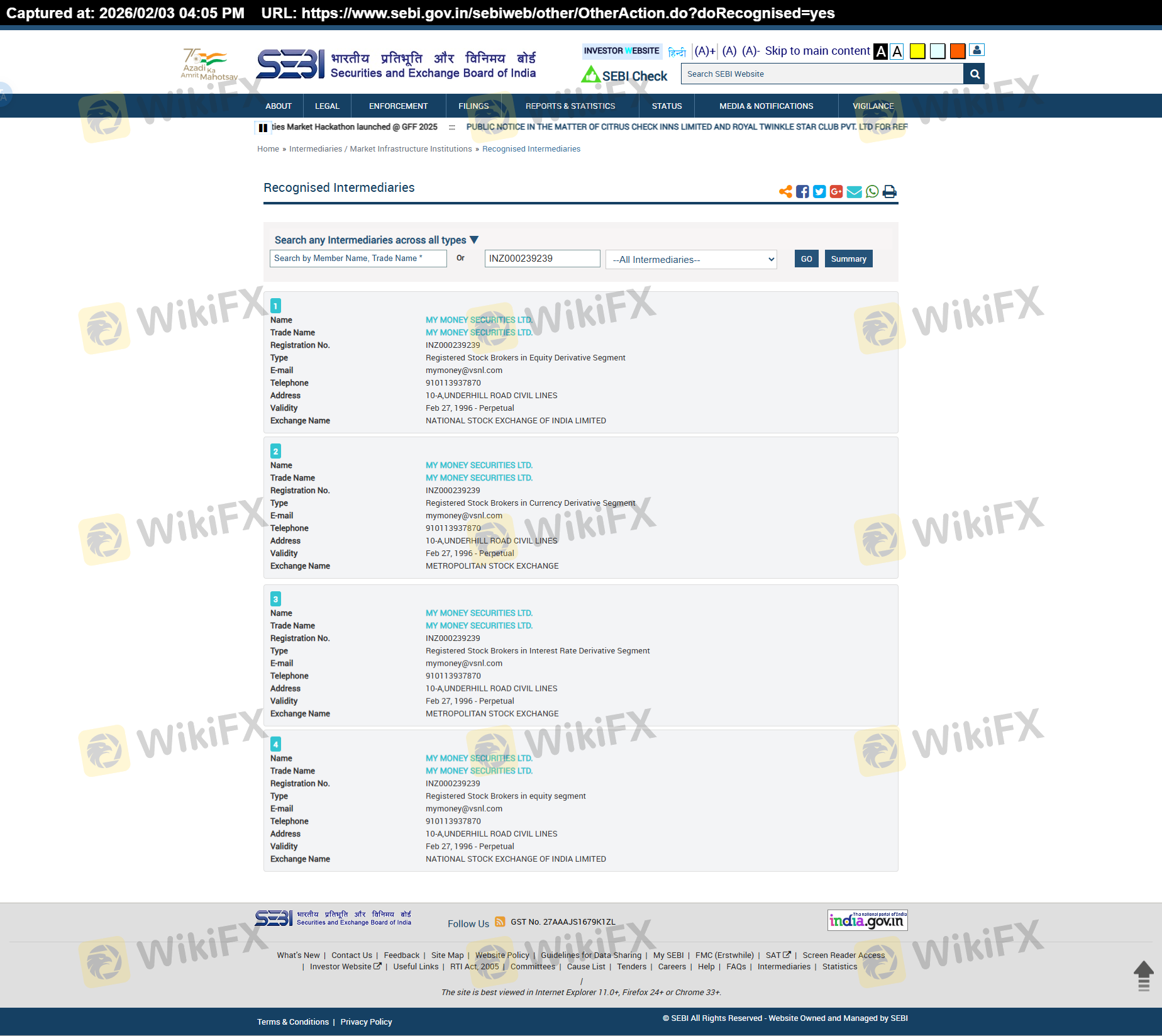 Regarding the legitimacy of MyMoney forex brokers, it provides SEBI and WikiBit, .