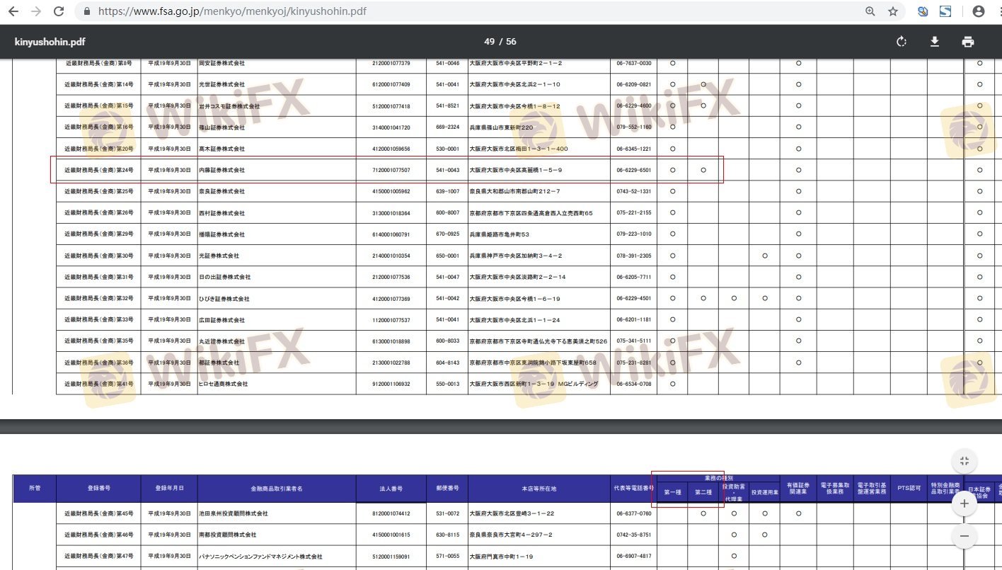 Regulation is a critical factor in assessing the safety of a forex broker. A well-regulated broker is more likely to adhere to industry standards and provide a safer trading environment for its clients. Naito Securities is regulated by Japan's Financial Services Agency (FSA), which is responsible for overseeing financial institutions in the country. Below is a summary of Naitos regulatory information: