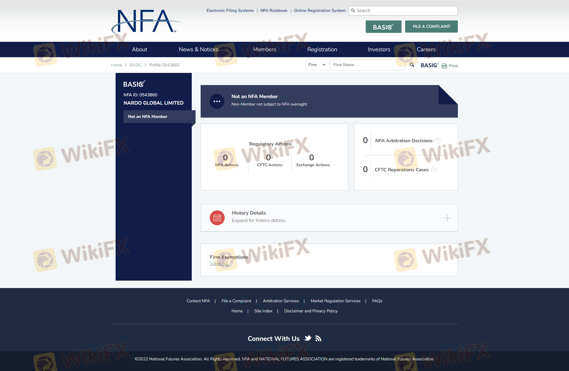 Regulation is a critical aspect of any trading platform, as it ensures that brokers adhere to industry standards and maintain a level of transparency and accountability. Nardo claims to be based in the United States and is linked to the National Futures Association (NFA). However, it is essential to scrutinize the broker's regulatory status and the quality of oversight it receives. Below is a summary of Nardo's regulatory information: