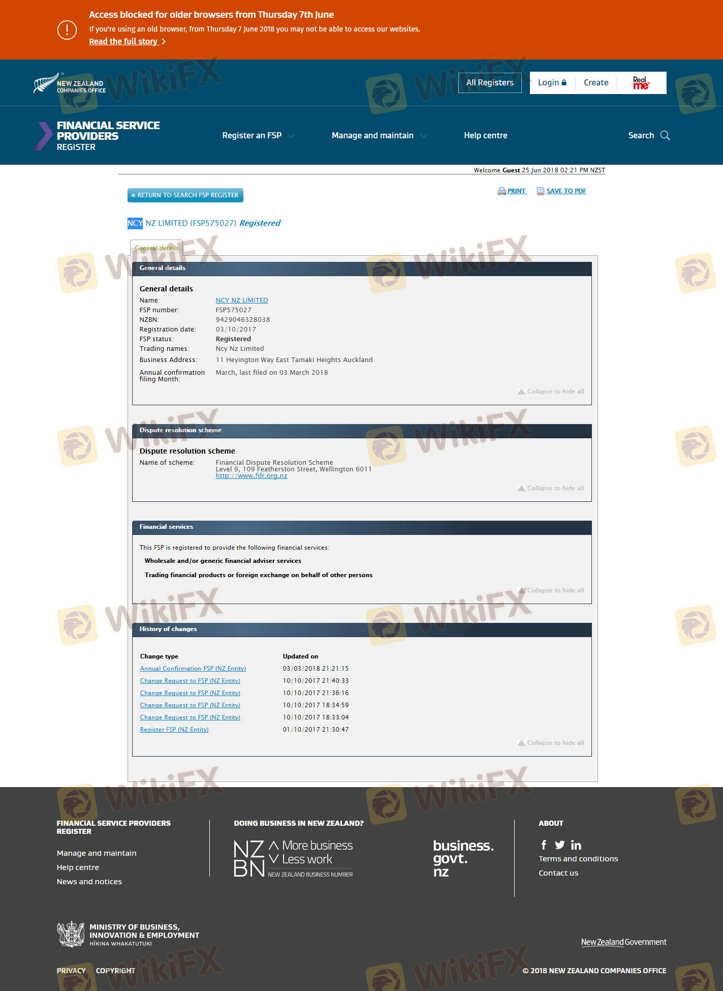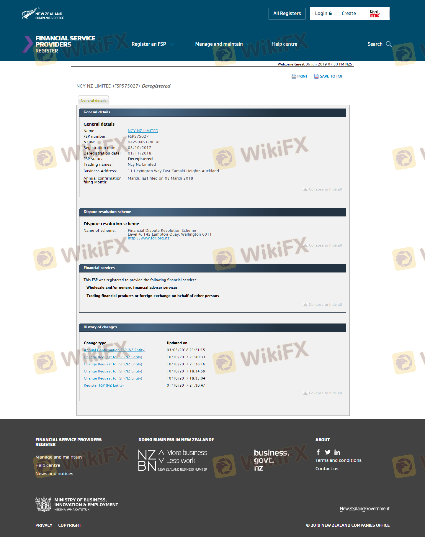 The regulatory framework surrounding a forex broker is paramount in determining its legitimacy and safety. A well-regulated broker typically adheres to strict guidelines that protect traders, while an unregulated broker may engage in questionable practices. In the case of NCY, it claims to be registered with the Financial Service Providers Register (FSPR) in New Zealand, but its regulatory status raises significant concerns.