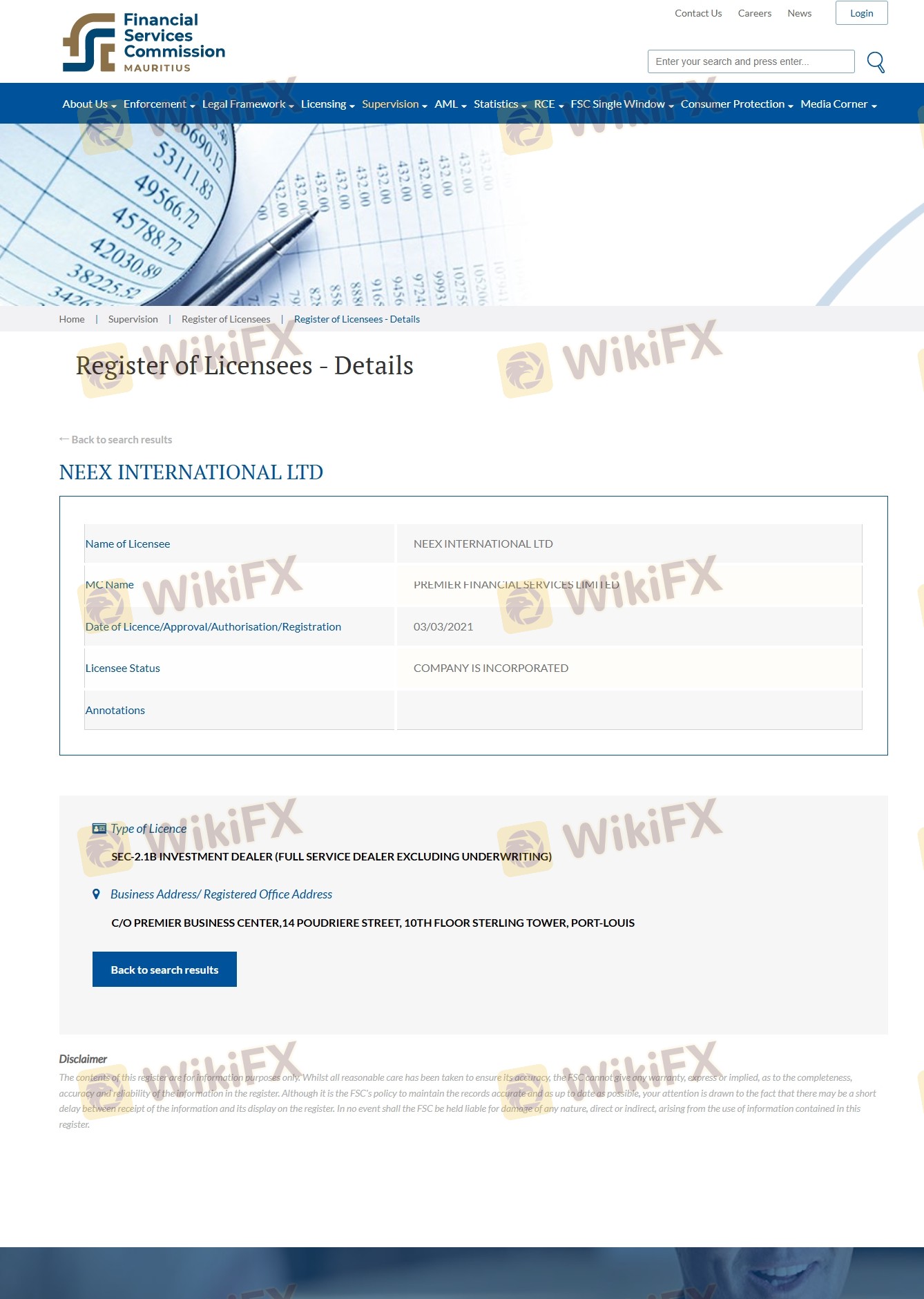 Regarding the legitimacy of Neex forex brokers, it provides FSC, FSCA and WikiBit, (also has a graphic survey regarding security).