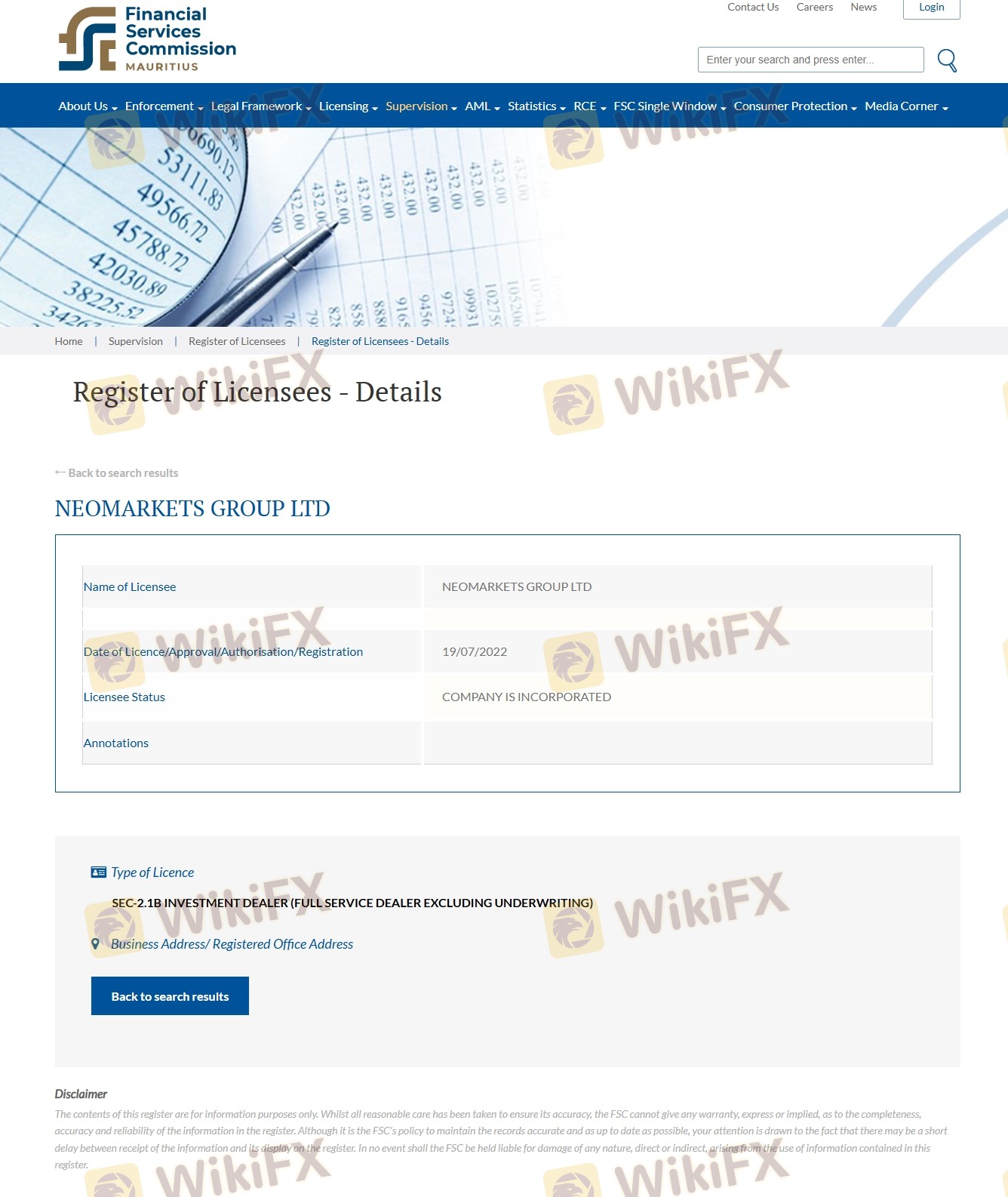 Understanding the regulatory landscape is crucial for any trader looking to assess the safety of a trading platform. Neomarkets claims to be regulated by the Financial Services Commission (FSC) of Mauritius. Regulation is vital as it provides a level of oversight that can protect traders from fraud and malpractice. However, the quality of regulation can vary significantly, and not all regulatory bodies offer the same level of protection. Below is a summary of Neomarkets' regulatory information: