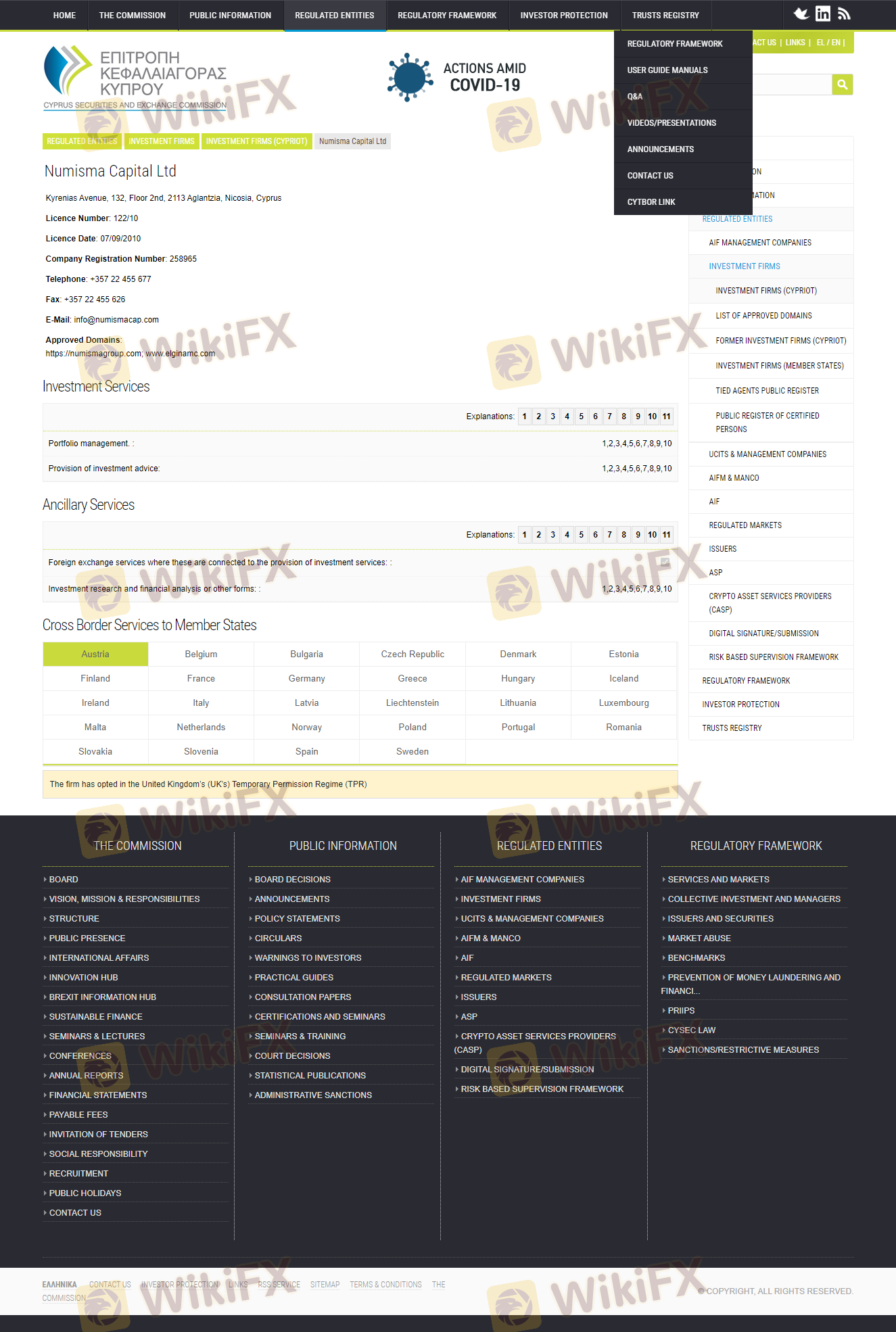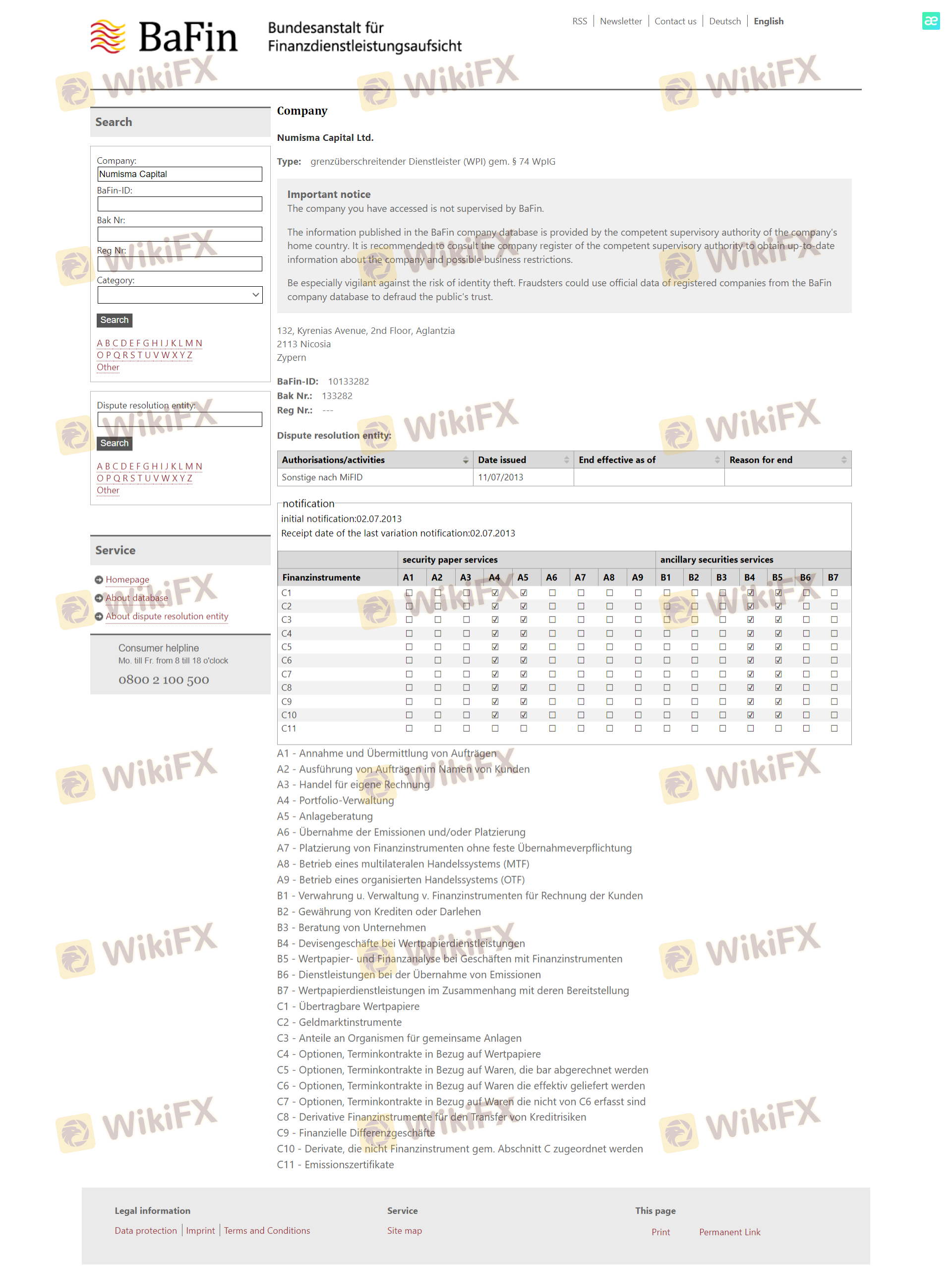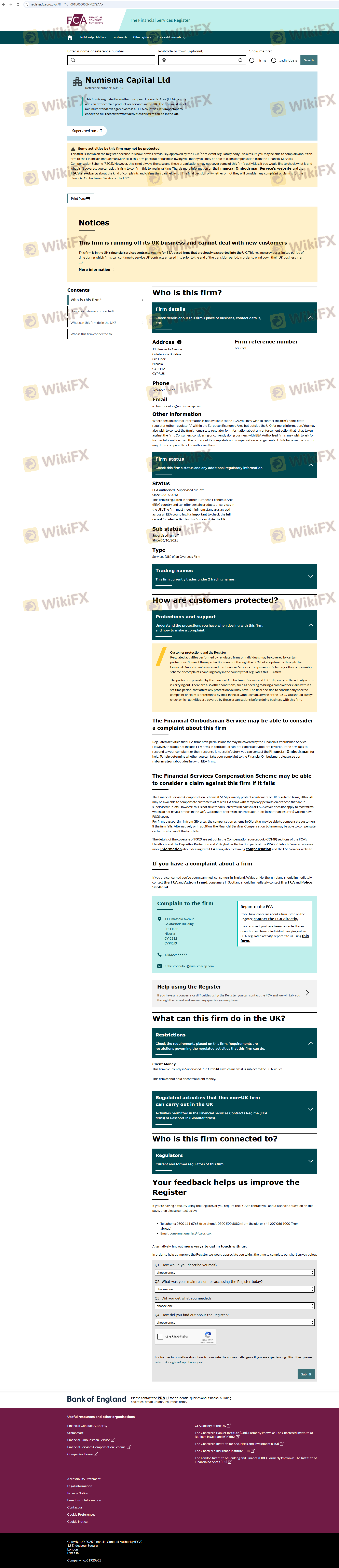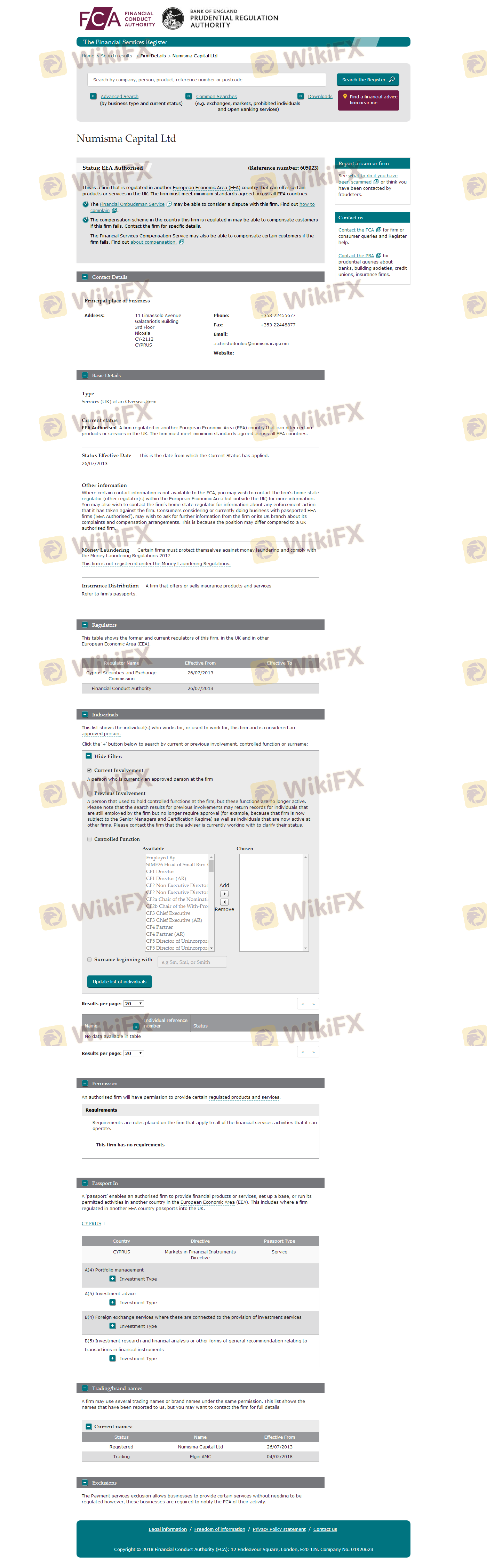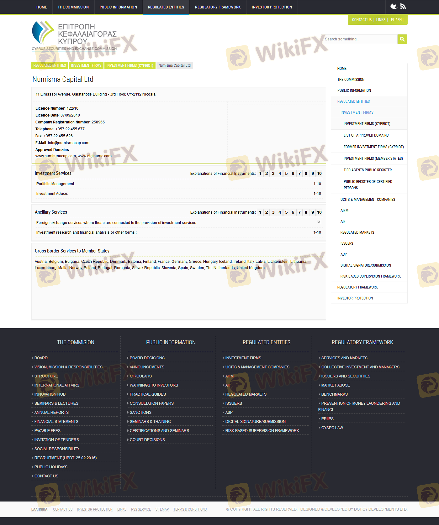 The regulatory status of a broker is crucial, as it provides a framework for investor protection and operational integrity. Numisma claims to be regulated by several financial authorities, including the Cyprus Securities and Exchange Commission (CySEC) and the Financial Conduct Authority (FCA) in the UK. However, the presence of multiple regulatory statuses, including "suspicious clone," raises concerns about its legitimacy.