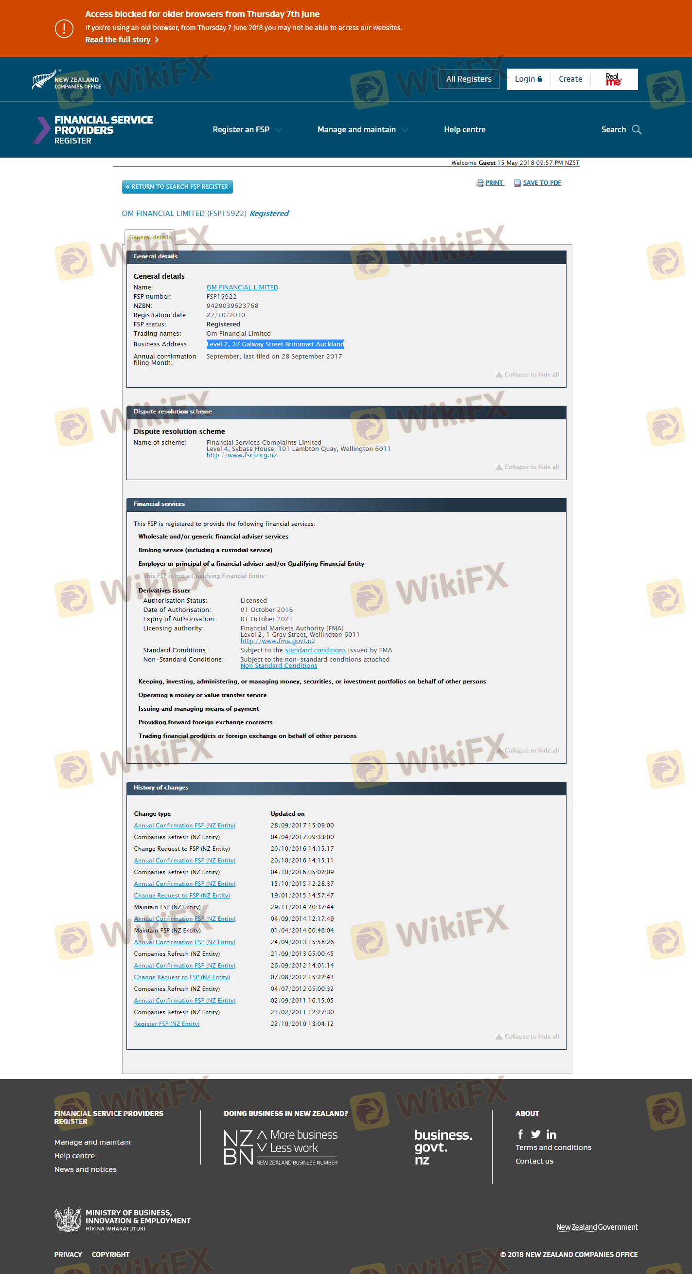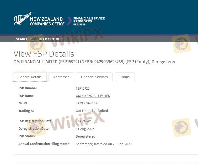 The regulatory landscape is one of the most critical factors in determining a broker's legitimacy. A well-regulated broker is more likely to be trustworthy and adhere to industry standards. OM claims to be regulated by the Financial Markets Authority (FMA) in New Zealand, which is a reputable regulatory body. Below is a summary of OM's regulatory information: