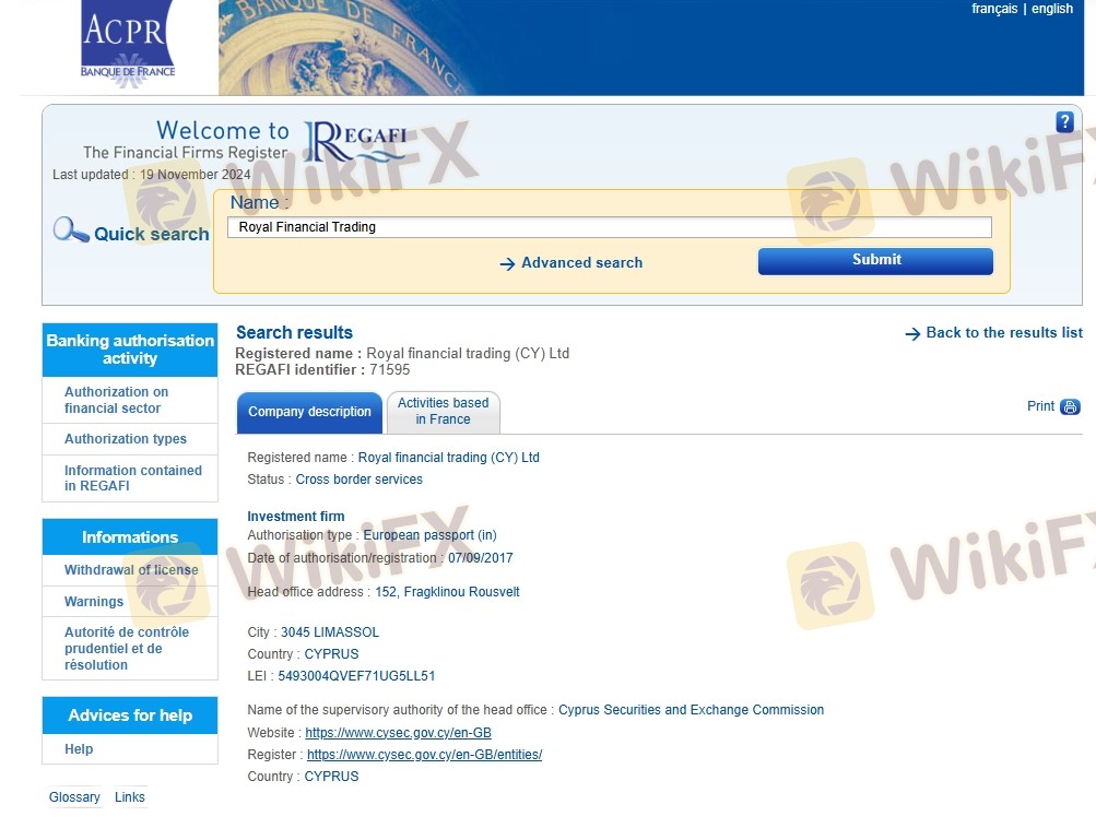Regulation is a key factor in assessing the legitimacy of a forex broker. OneRoyal operates under the oversight of multiple regulatory bodies, which adds a layer of security for its clients. The broker is regulated by the Australian Securities and Investments Commission (ASIC), the Cyprus Securities and Exchange Commission (CySEC), the Vanuatu Financial Services Commission (VFSC), and the Financial Services Authority (FSA) in Saint Vincent and the Grenadines. The presence of these regulatory licenses indicates a commitment to maintaining industry standards and protecting client funds.