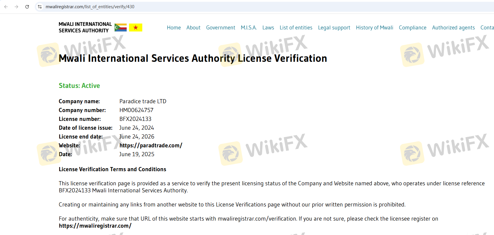 The regulatory status of a broker is a crucial factor in determining its legitimacy and the safety of client funds. Paradtrade claims to operate under the auspices of the St. Vincent and the Grenadines Financial Services Authority (SVG FSA) and asserts membership in the International Financial Market Relations Regulation Center (IFMRRC). However, investigations reveal discrepancies in these claims, raising questions about the broker's compliance with regulatory standards.