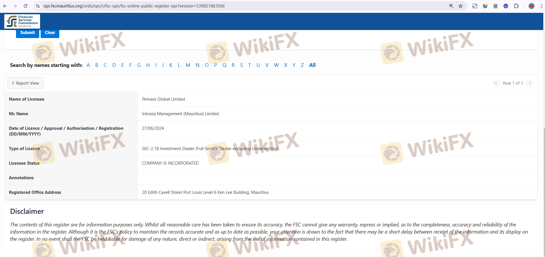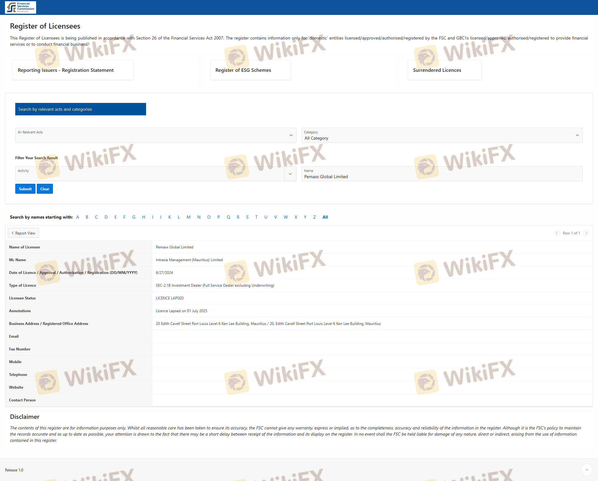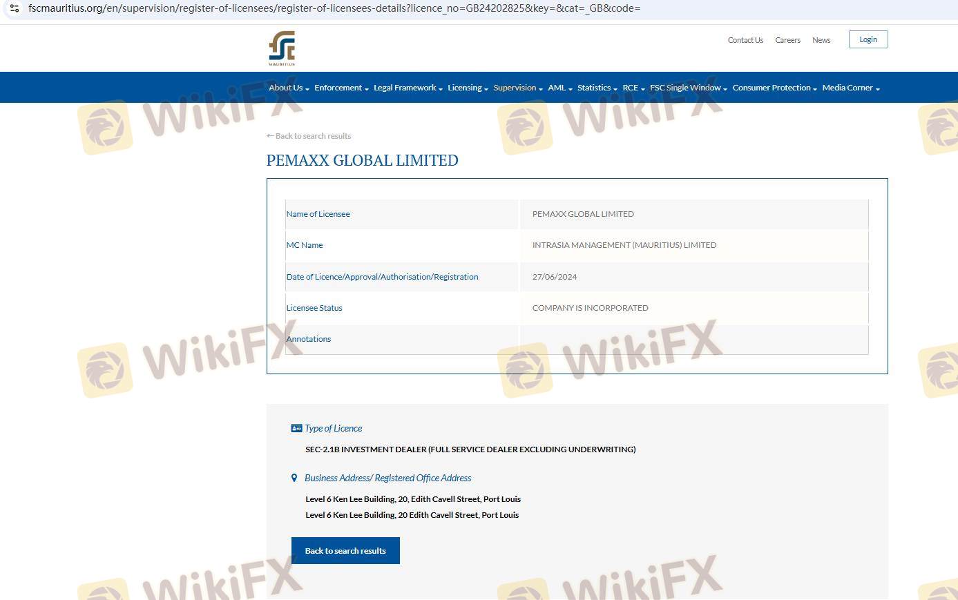 Despite claiming to have a license, no record of Pemaxx can be found in the Mauritius Financial Services Commission (FSC) database. This raises serious concerns about the broker's credibility and suggests that it may be operating without proper licensing. The FSC is known for its relatively lenient regulatory framework, which does not guarantee the same level of investor protection as stricter regulatory bodies like the FCA or ASIC.