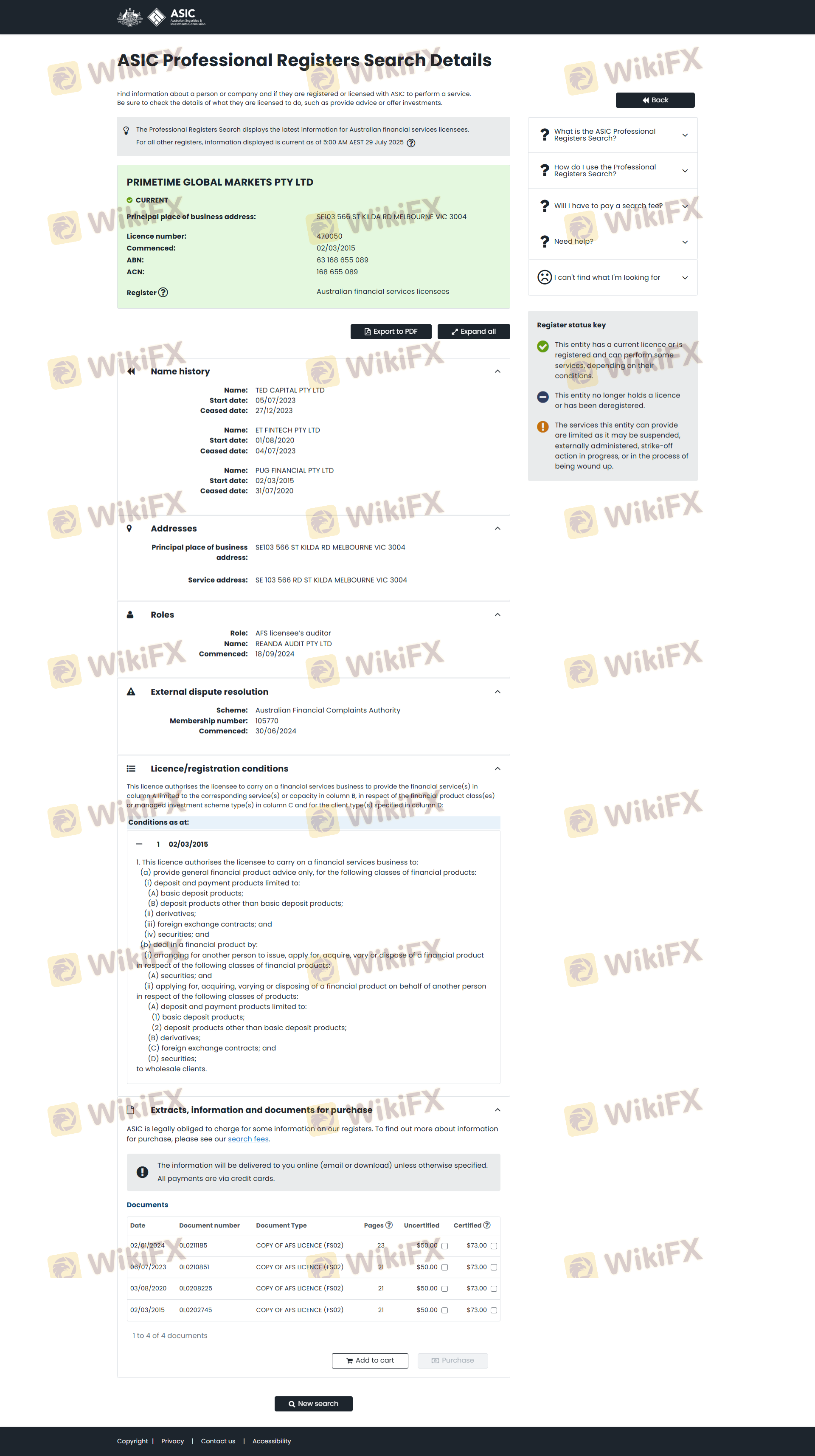 Regarding the legitimacy of PRIMETIME GLOBAL MARKETS forex brokers, it provides ASIC, FSCA, FSA and WikiBit, (also has a graphic survey regarding security).
