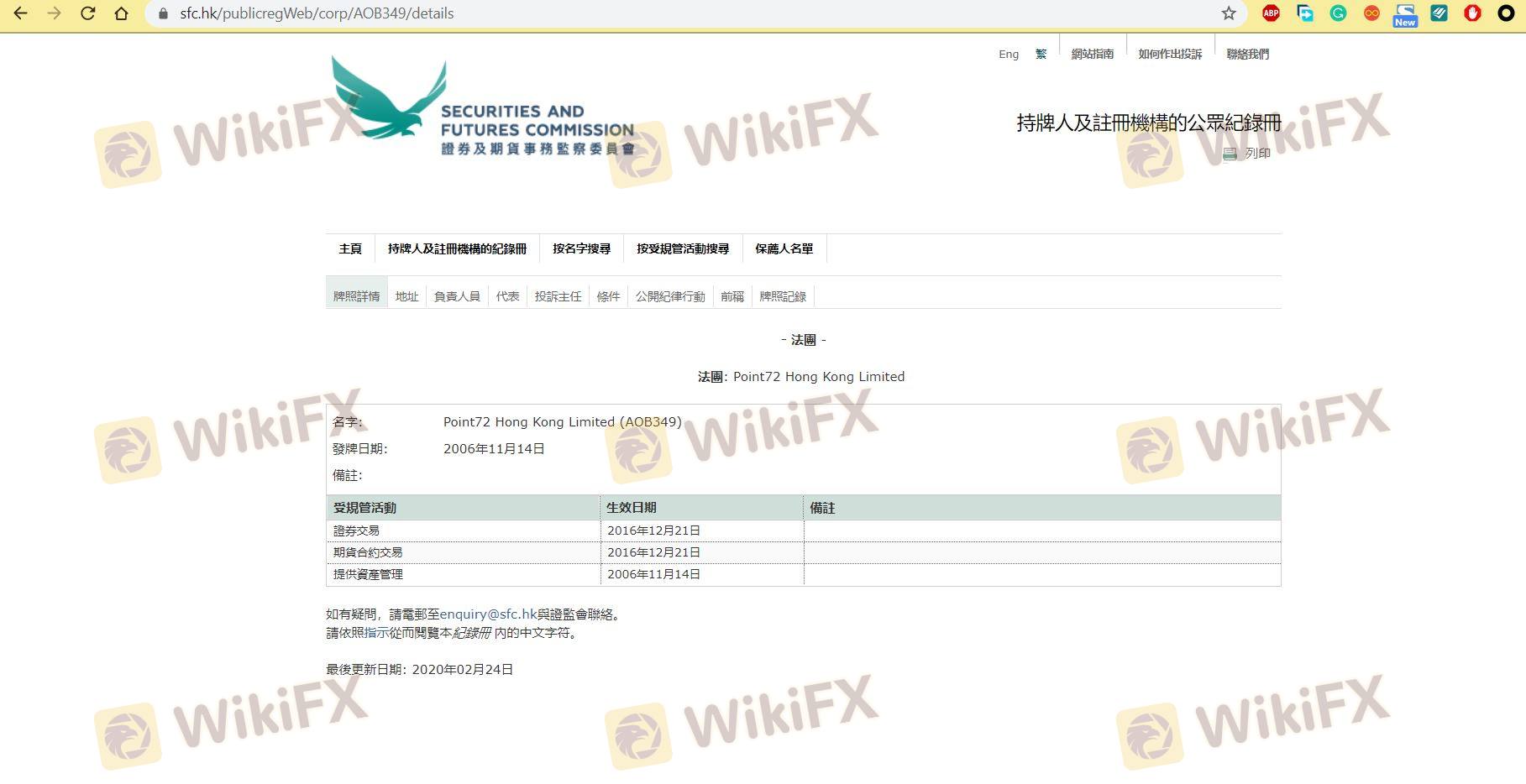 Regarding the legitimacy of Point72 forex brokers, it provides SFC and WikiBit, (also has a graphic survey regarding security).
