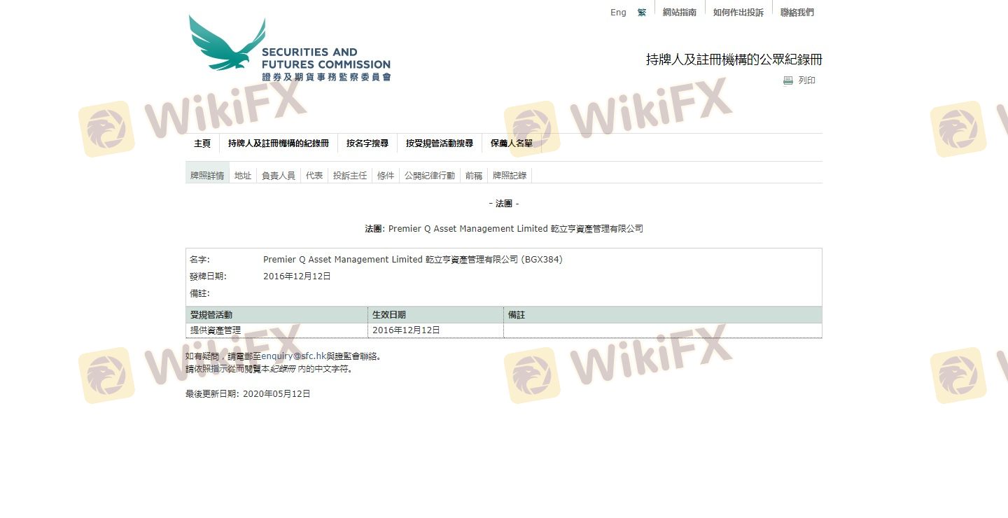 | Securities and Futures Commission (SFC) | BGX 384 (Asset Management) | Hong Kong | Expired |