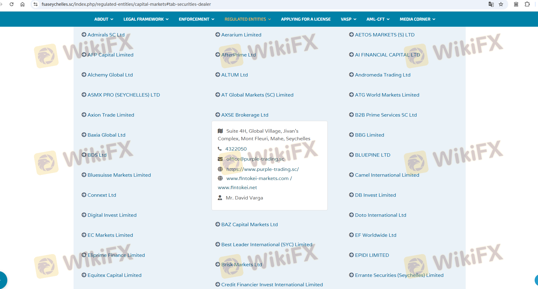 Regarding the legitimacy of PURPLE TRADING forex brokers, it provides FSA and WikiBit, (also has a graphic survey regarding security).