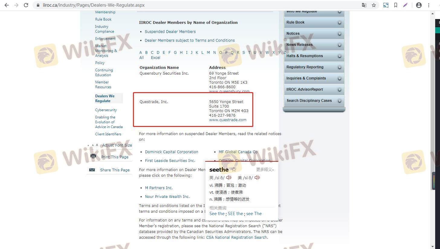Questrade latest industry rating score is 6.72, the higher the score the safer it is out of 10, the more regulatory licenses the more legitimate it is. 6.72 If the score is too low, there is a risk of being scammed, please pay attention to the choice to avoid.