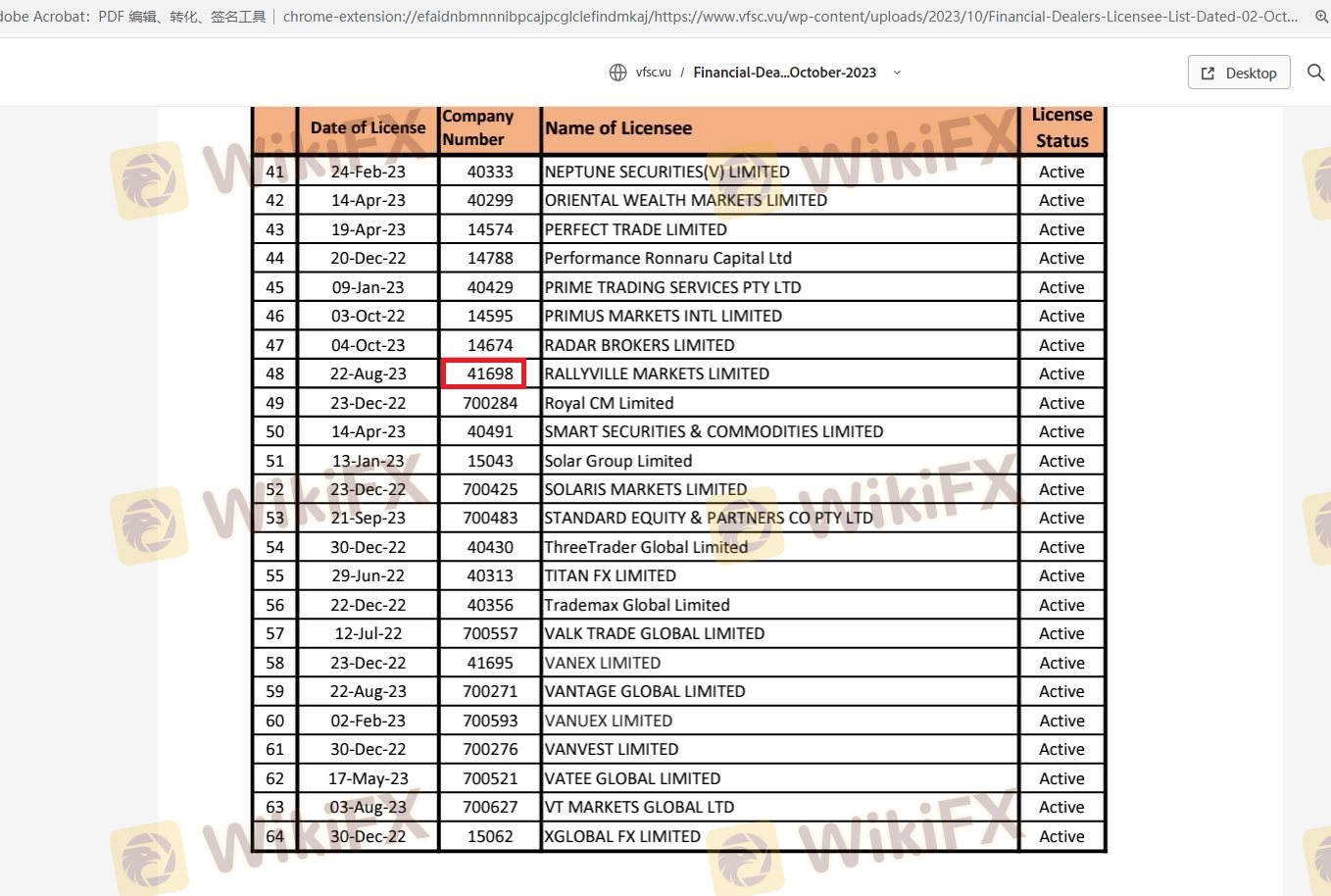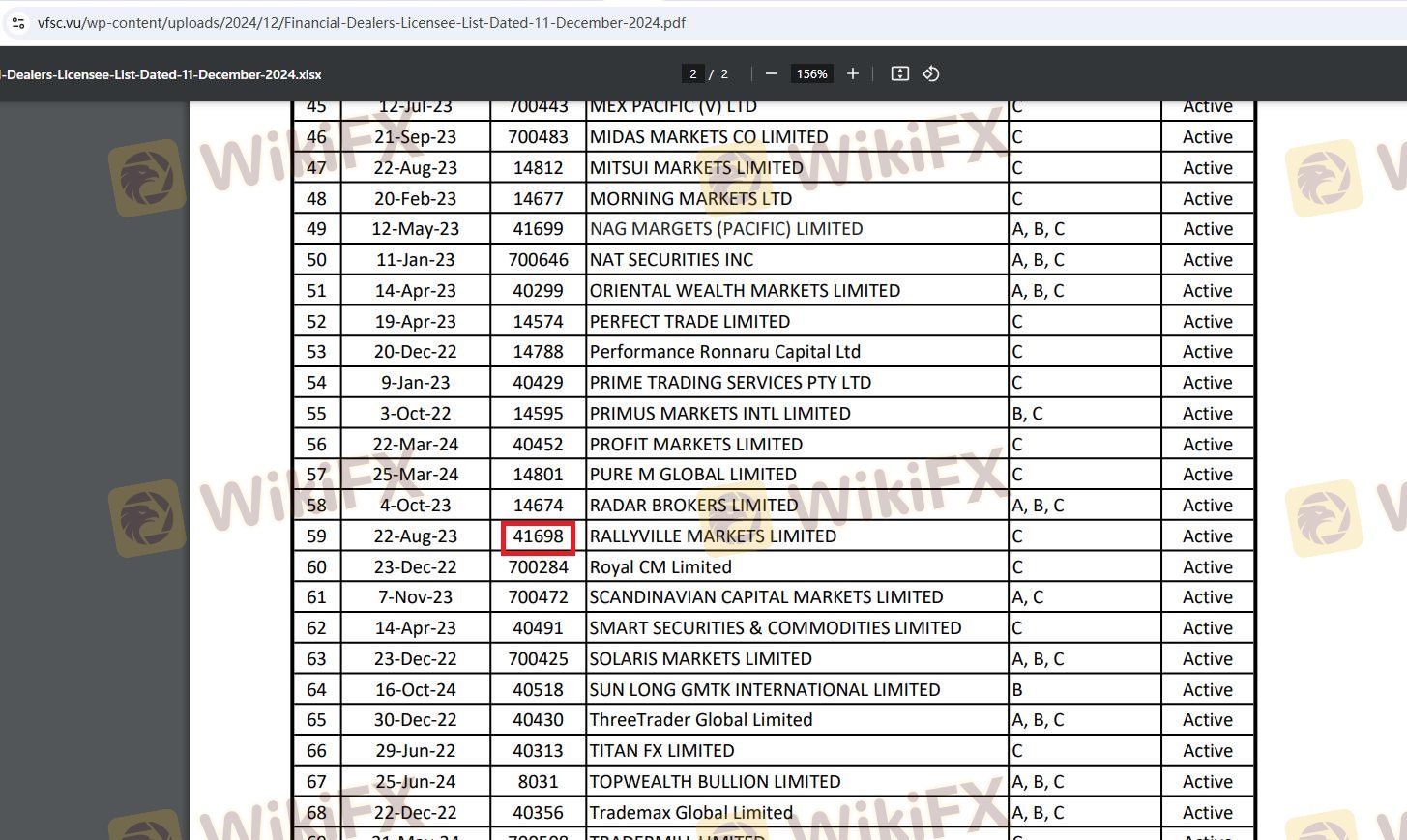 | VFSC | 41698 | Vanuatu | Registered |
