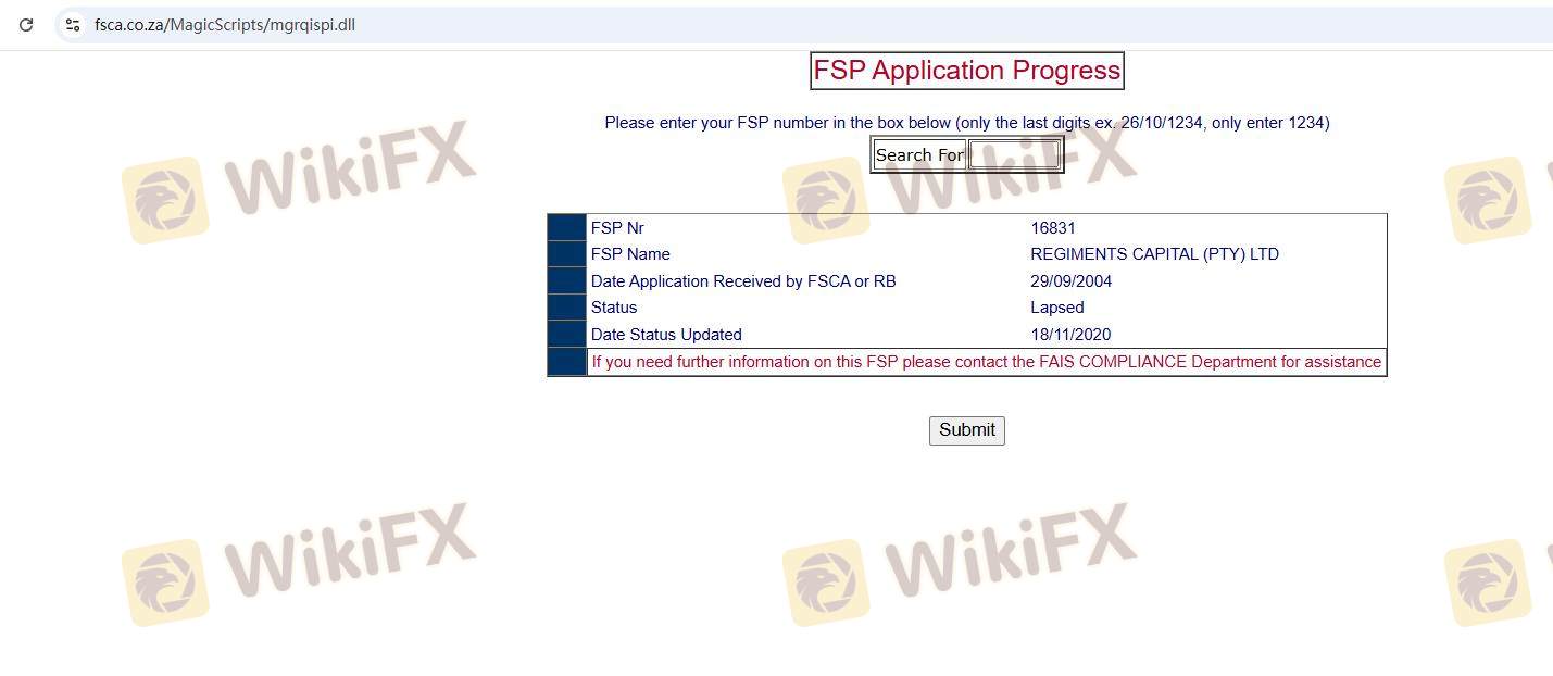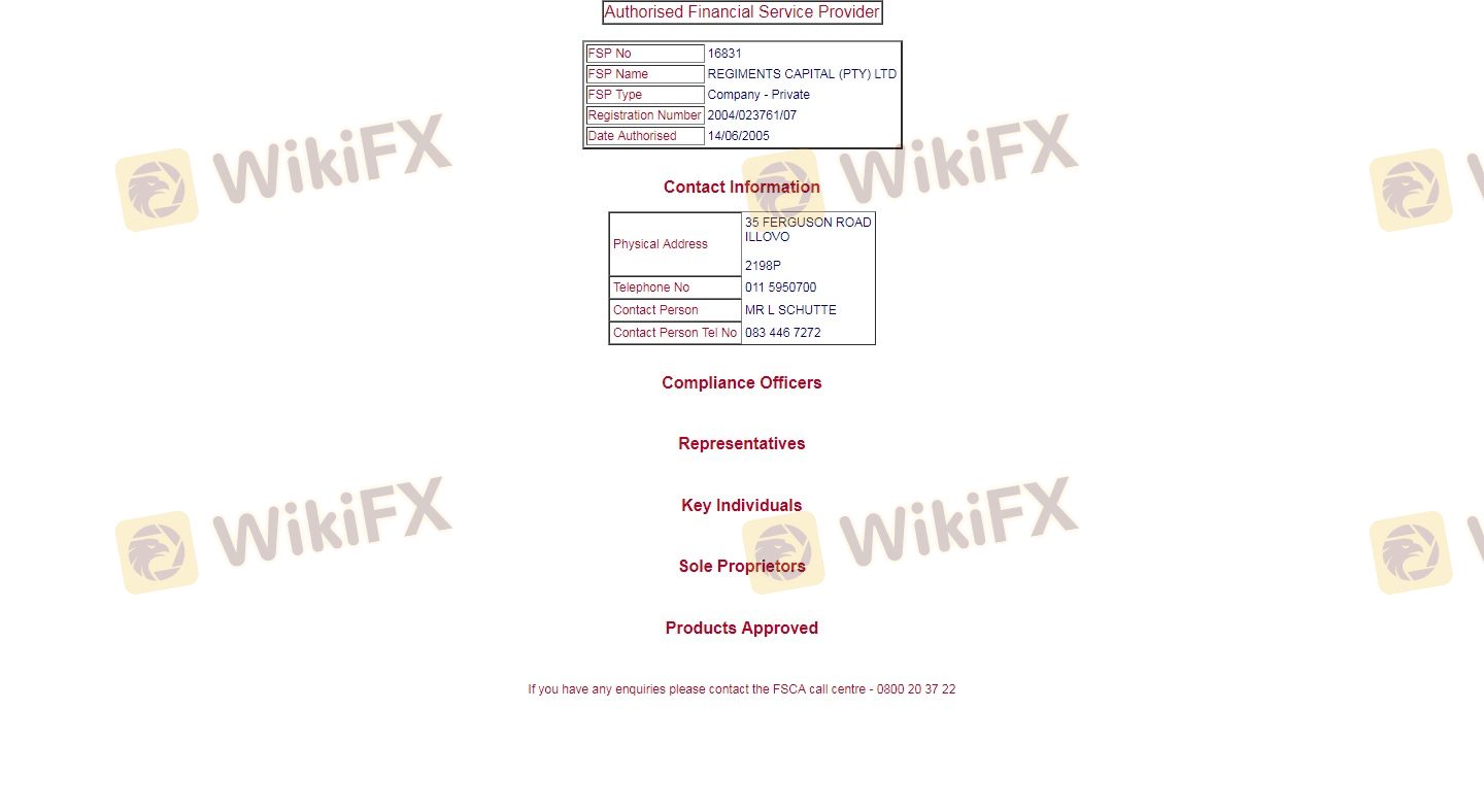Regarding the legitimacy of Regiments forex brokers, it provides FSCA and WikiBit, .