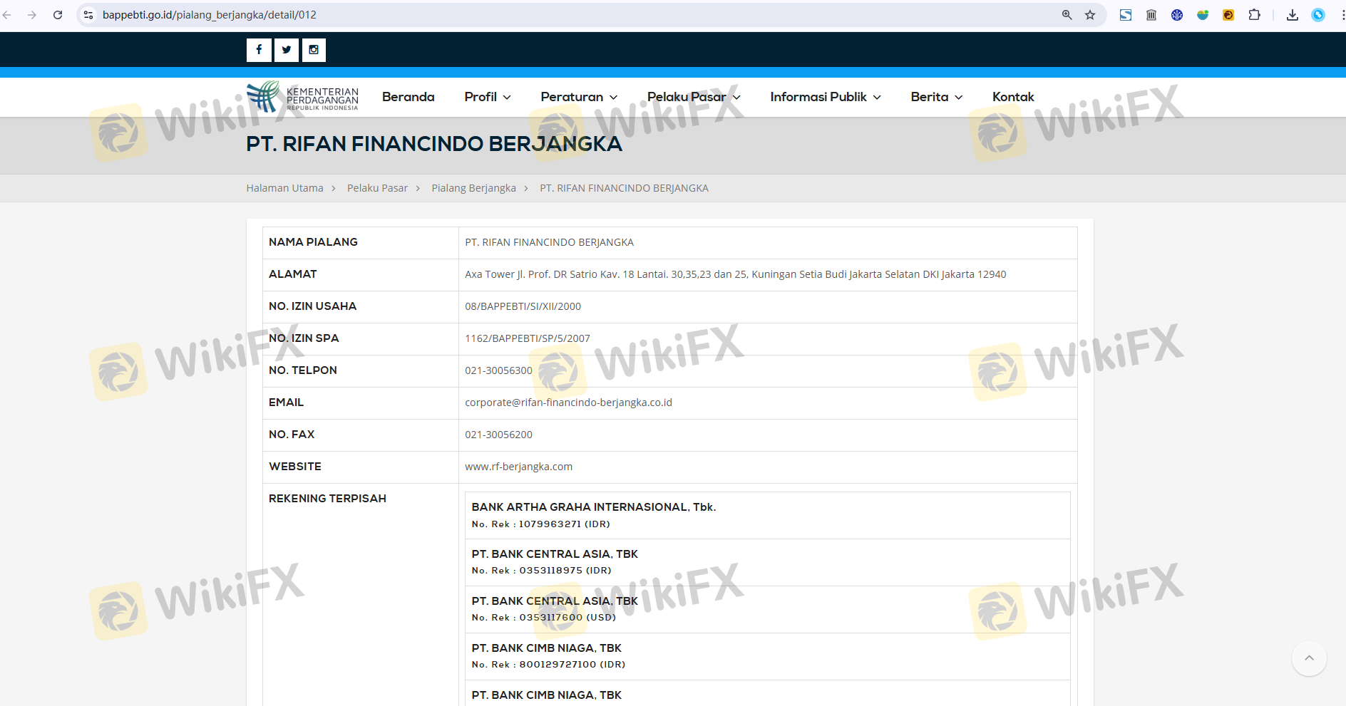 Regarding the legitimacy of RIFAN FINANCINDO BERJANGKA forex brokers, it provides BAPPEBTI and WikiBit, (also has a graphic survey regarding security).