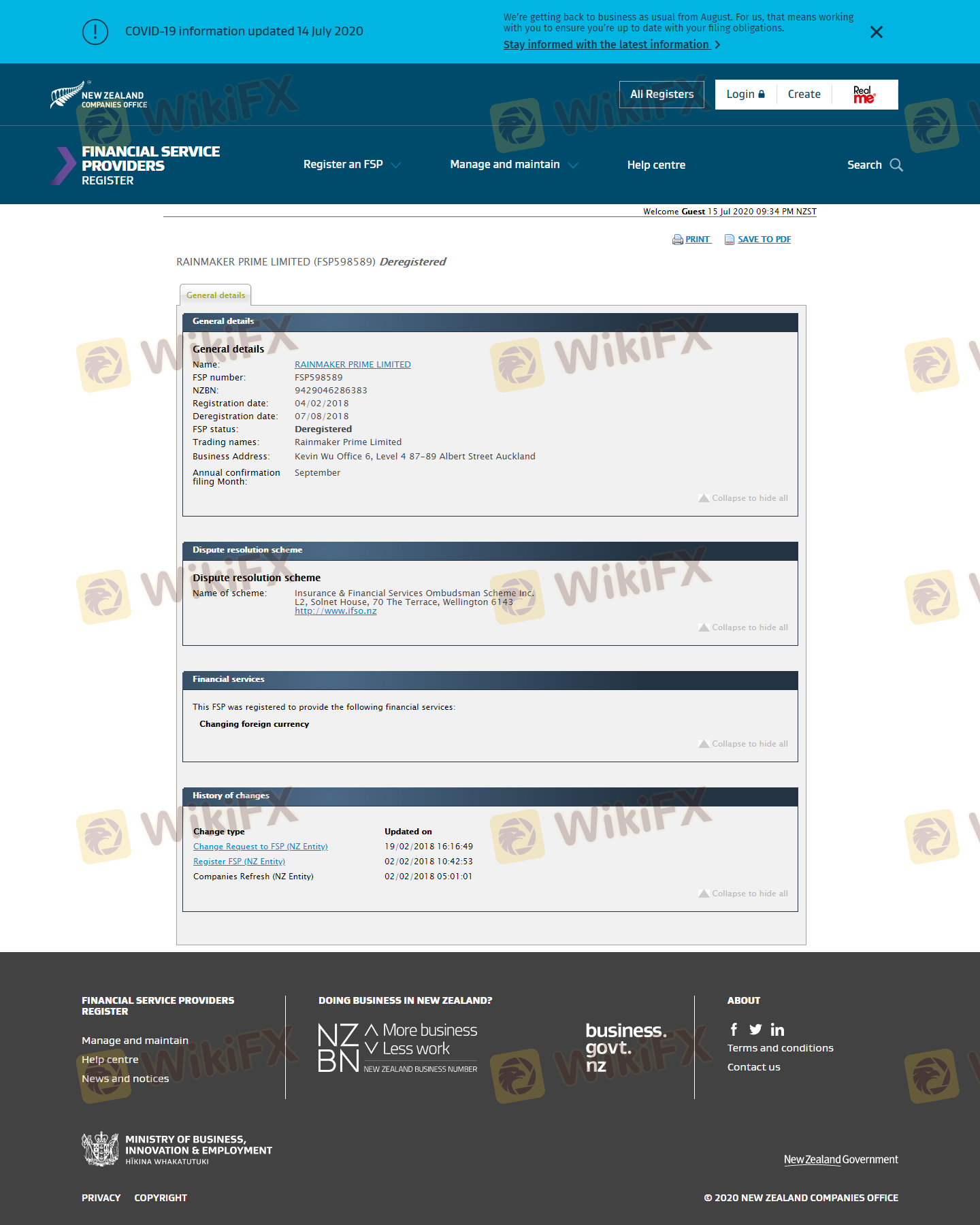 | Financial Services Provider (FSP) | 598589 | New Zealand | Canceled |