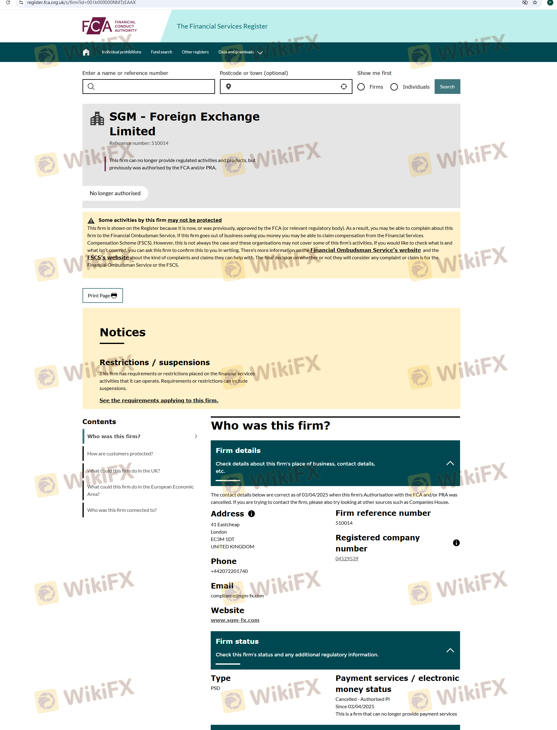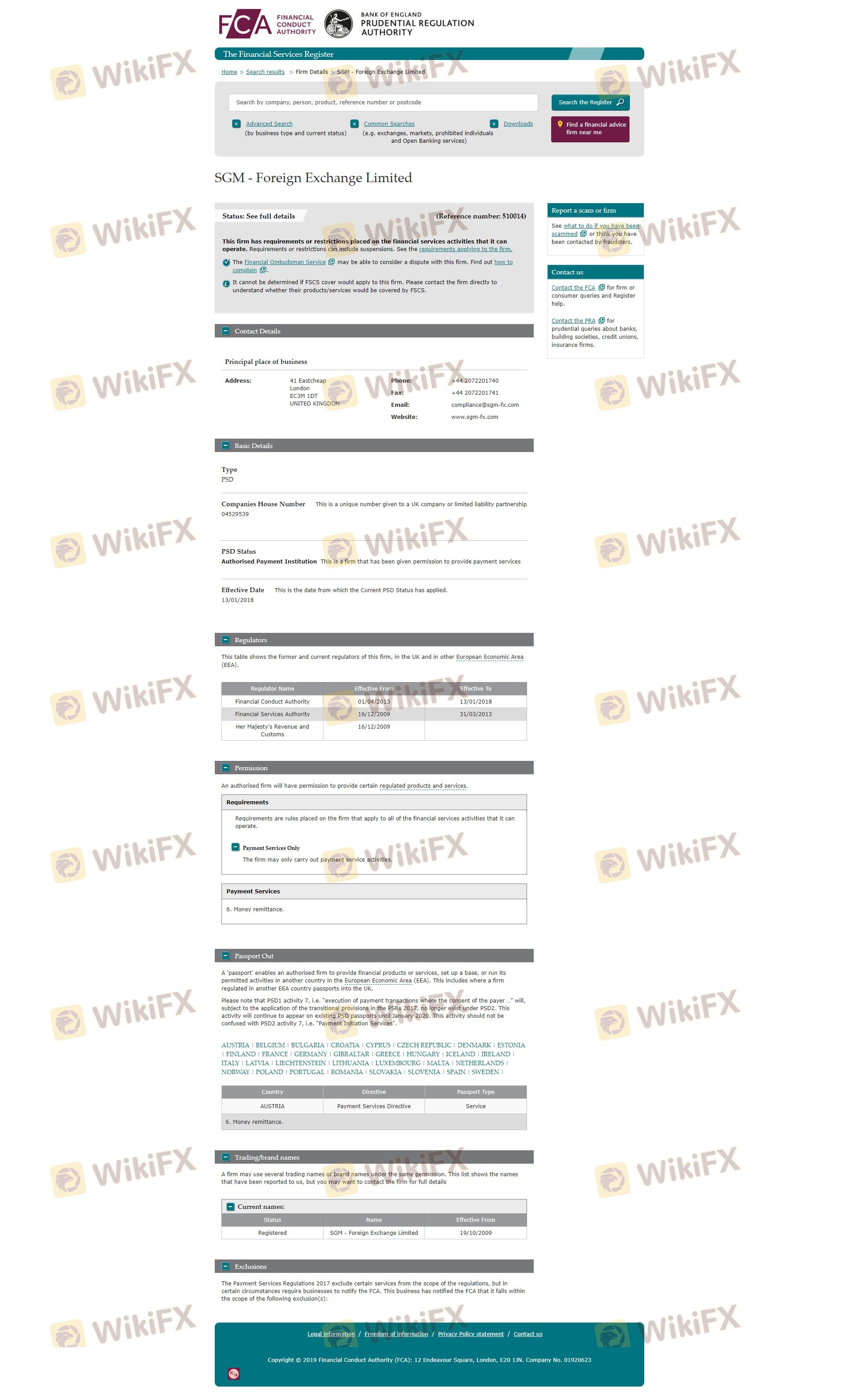 The regulatory environment in which a forex broker operates is crucial for ensuring the safety and security of client funds. SGM-FX operates under a payment services license issued by the UK's Financial Conduct Authority (FCA). However, it is important to note that the company's activities have reportedly exceeded the scope of this license, raising concerns about its regulatory compliance.