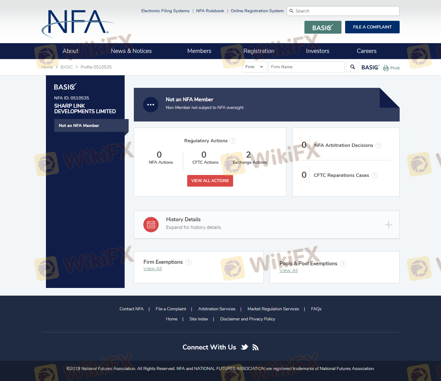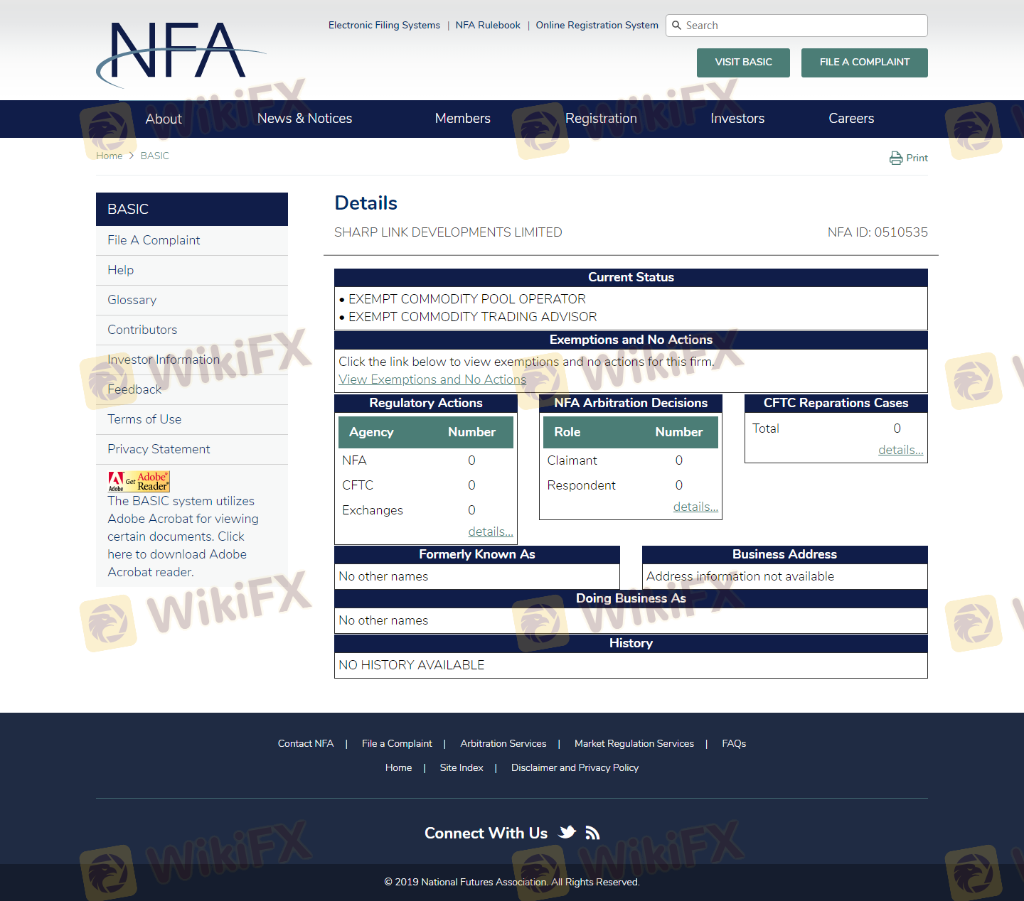 Regulation plays a crucial role in determining the safety and legitimacy of a Forex broker. A properly regulated broker is subject to oversight by financial authorities, which helps ensure that they operate transparently and adhere to strict standards. For Sharp Link, we have compiled the following regulatory information: